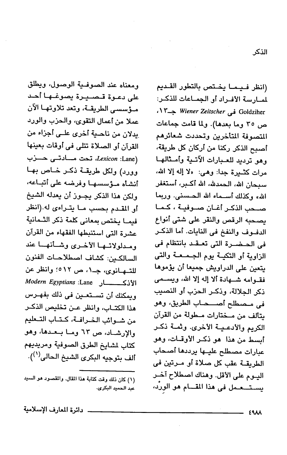 للتهانوى، ج 1، ص 512؛ وانظر عن الأذكار Modern Egyptians: Lane ويمكنك أن تستعين في ذلك بفهرس هذا الكتاب، وانظر عن تخليص الذكر من شوائب الخرافة، كتاب التعليم والإرشاد، ص 63 وما بعدها. وهو كتاب لمشايخ الطرق الصوفية ومريديهم ألف بتوجيه البكرى الشيخ الحالى) (¬1).
