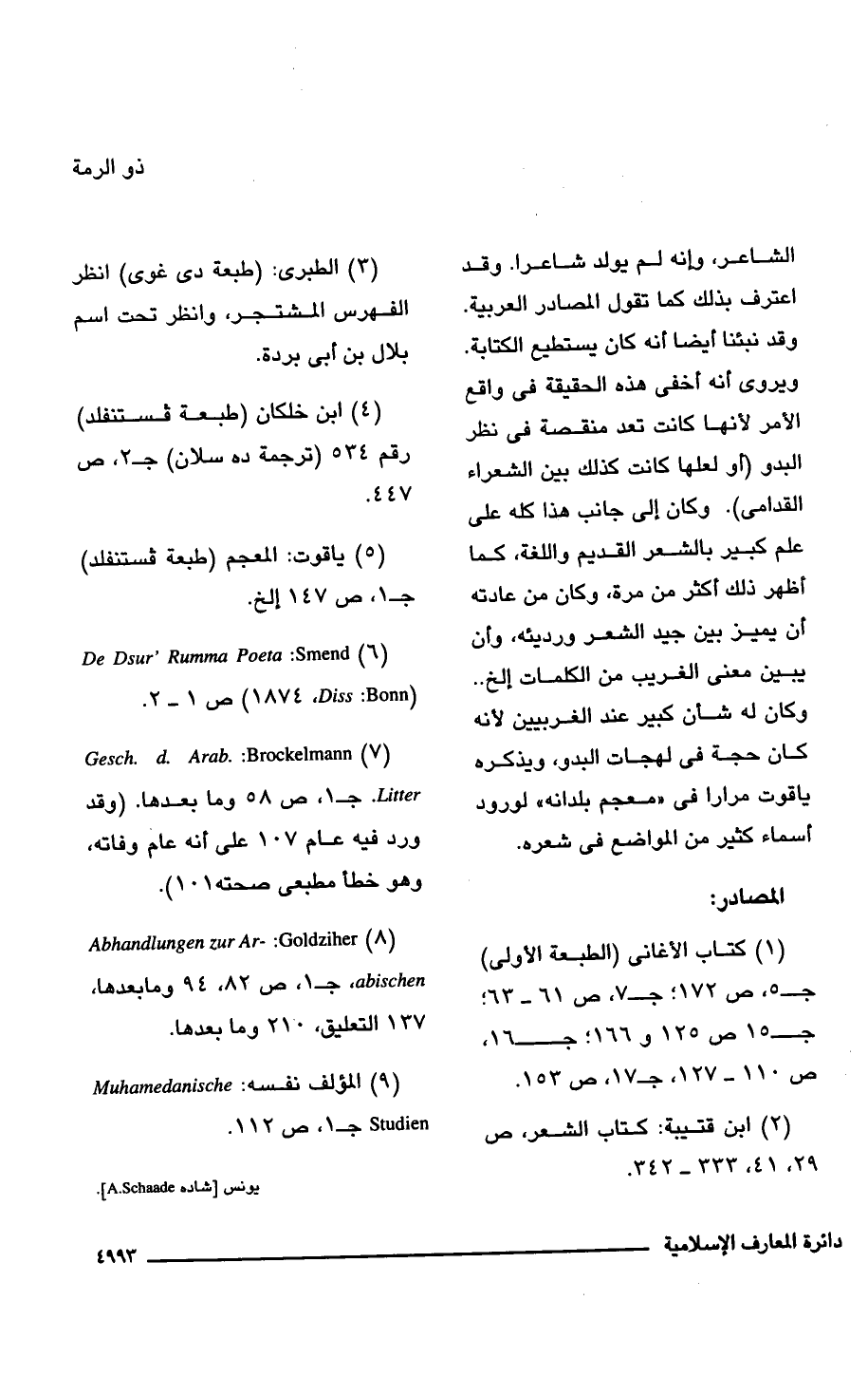 (7) Gesch. d. Arab.: Brockelmann Litter . ج 1، ص 58 وما بعدها. (وقد ورد فيه عام 107 على أنَّه عام وفاته، وهو خطأ مطبعى صحته 101).