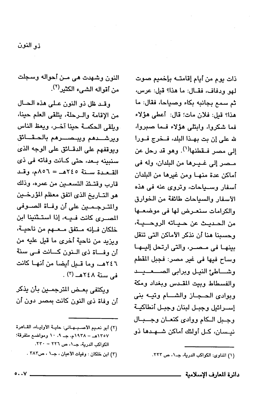 ويكتفى بعض المترجمين بأن يذكر أن وفاة ذى النون كانت بمصر دون أن