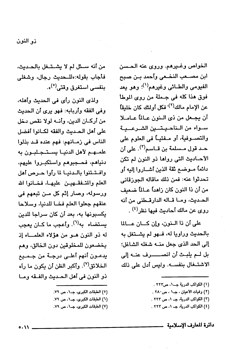 على أن ذا النون، وإن كان عالمًا بالحديث وراويًا له، فهو لم يشتغل به إلى الحد الَّذي جعل منه شغله الشاغل؛ بل لم يلبث أن انصرف عنه إلى الاشتغال بنفسه. وليس أدل على ذلك من أنَّه سئل لم لا يشتغل بالحديث، فأجاب بقوله: "للحديث رجال، وشغلى بنفسى استغرق وقتى (¬5) ".