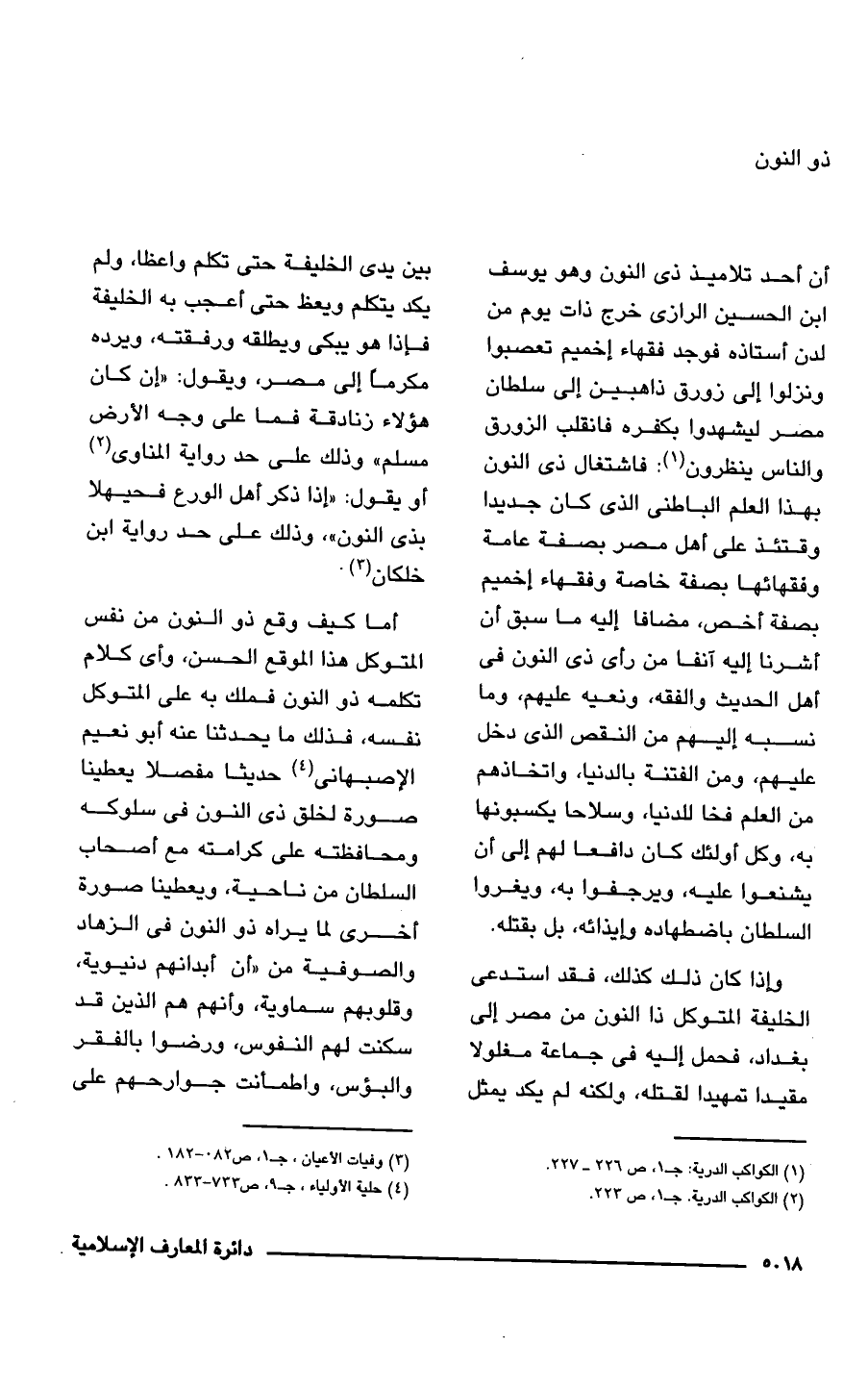 أما كيف وقع ذو النون من نفس المتوكل هذا الموقع الحسن، وأى كلام تكلمه ذو النون فملك به على المتوكل نفسه، فذلك ما يحدثنا عنه أبو نعيم الأصبهانى (¬4) حديثًا مفصلًا يعطينا صورة لخلق ذى النون في سلوكه ومحافظته على كرامته مع أصحاب
