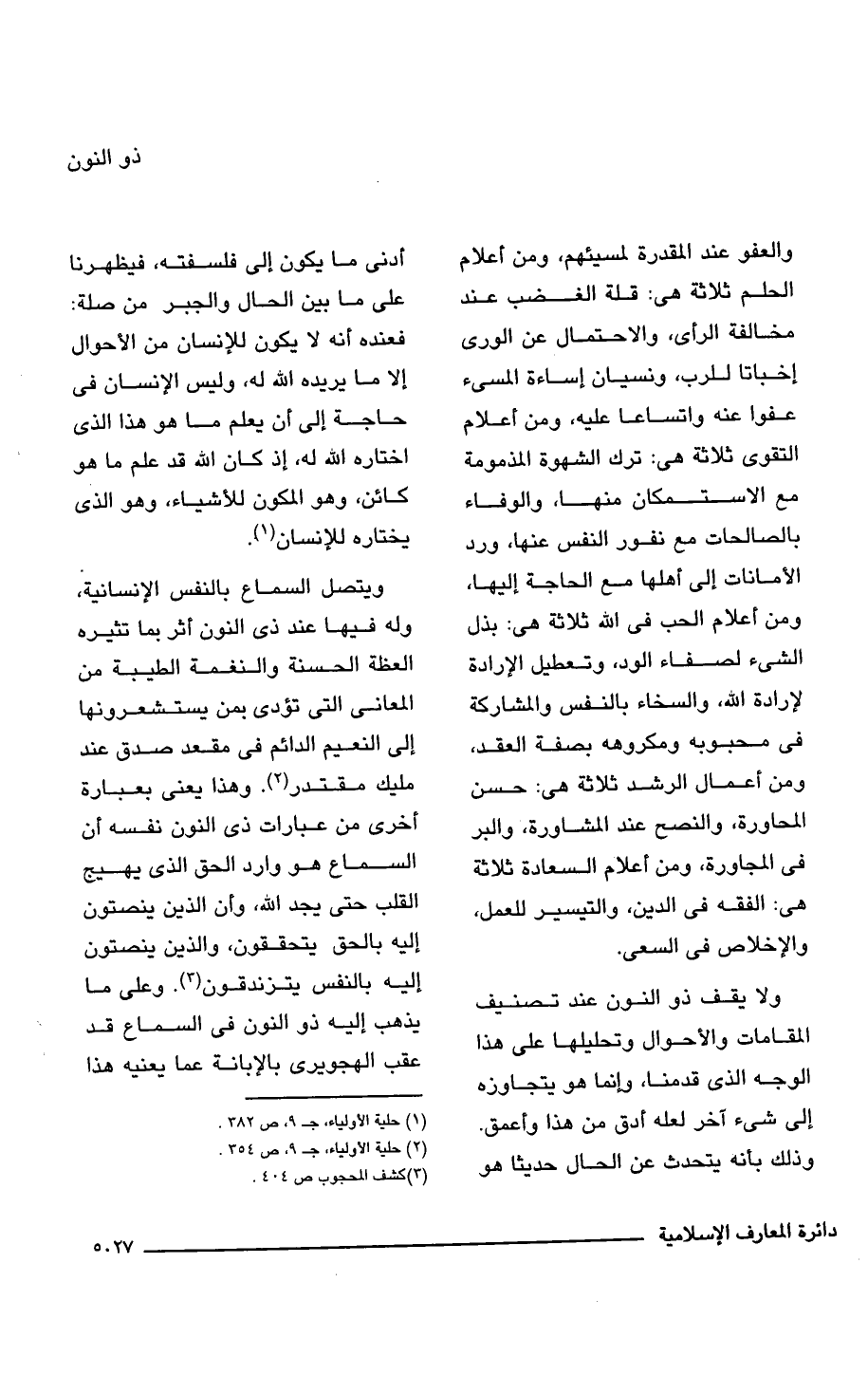 ولا يقف ذو النون عند تصنيف المقامات والأحوال وتحليلها على هذا الوجه الَّذي قدمنا، وإنما هو يتجاوزه إلى شيء آخر لعله أدق من هذا وأعمق.