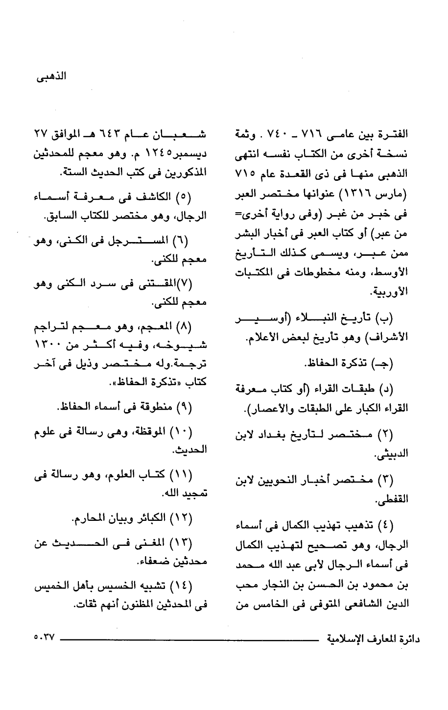 (4) تذهيب تهذيب الكمال في أسماء الرجال، وهو تصحيح لتهذيب الكمال في أسماء الرجال لأبي عبد الله محمد بن محمود بن الحسن بن النجار محب الدين الشافعي المتوفى في الخامس من شعبان 643 هـ الموافق 27 ديسمبره 1245 م. وهو معجم للمحدثين المذكورين في كتب الحديث الستة.