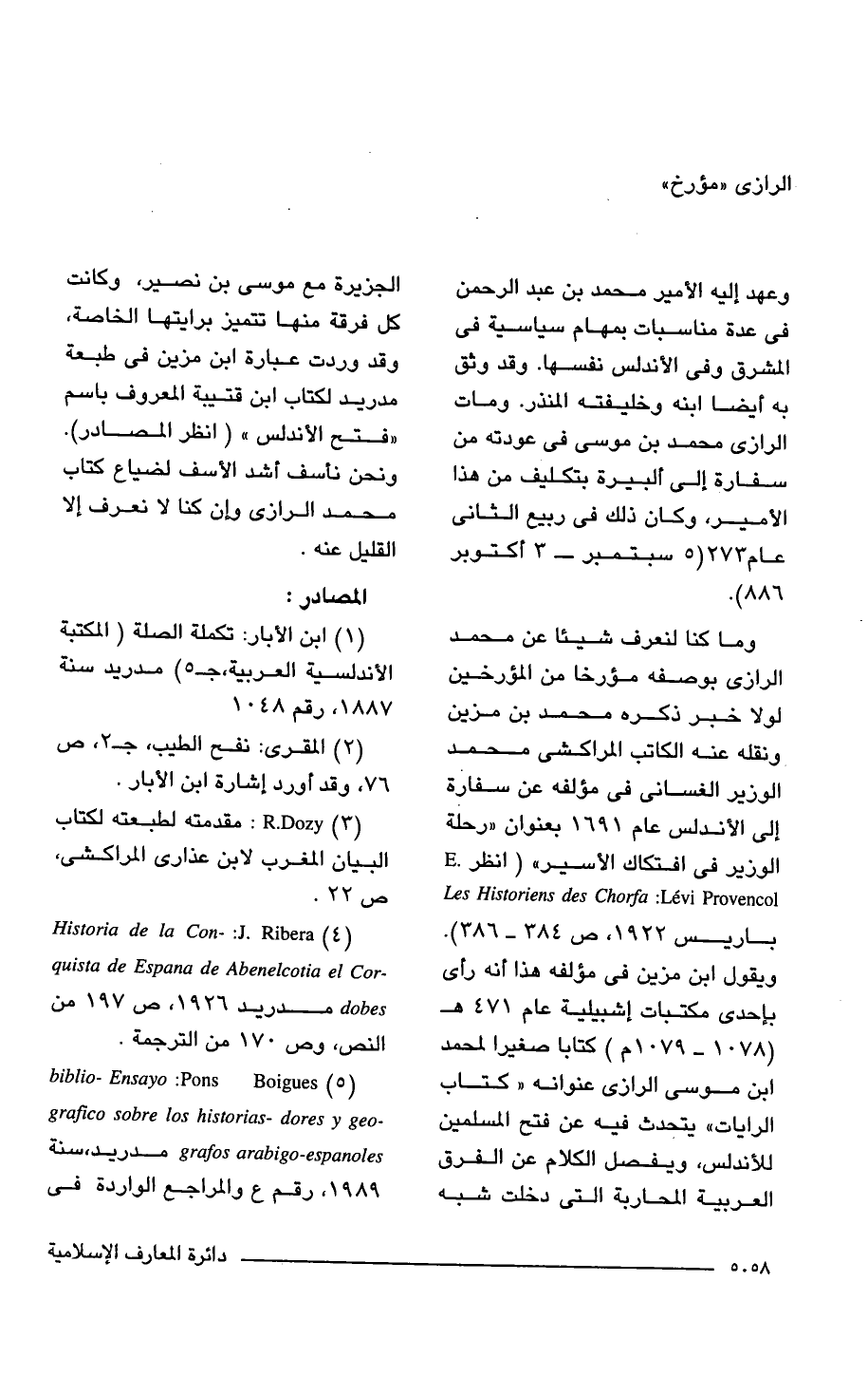 (5) biblio- Ensayo: Pons Boigues grafico sobre los historias- dores y geo- grafos arabigo-espanoles مدريد، سنة 1989 رقم ع والمراجع الواردة في