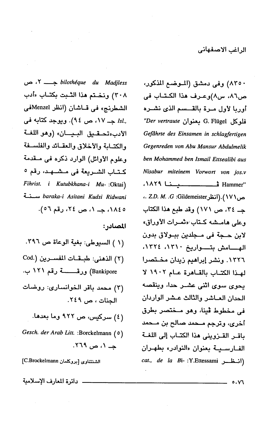 8350) وفى دمشق (الموضع المذكور، ص 86، س 8) وعرف هذا الكتاب في أوربا لأول مرة بالقسم الَّذي نشره فلوكل G. Flugel بعنوان Der vertraute Gefkhrte des Einsamen in schlagfertigen "