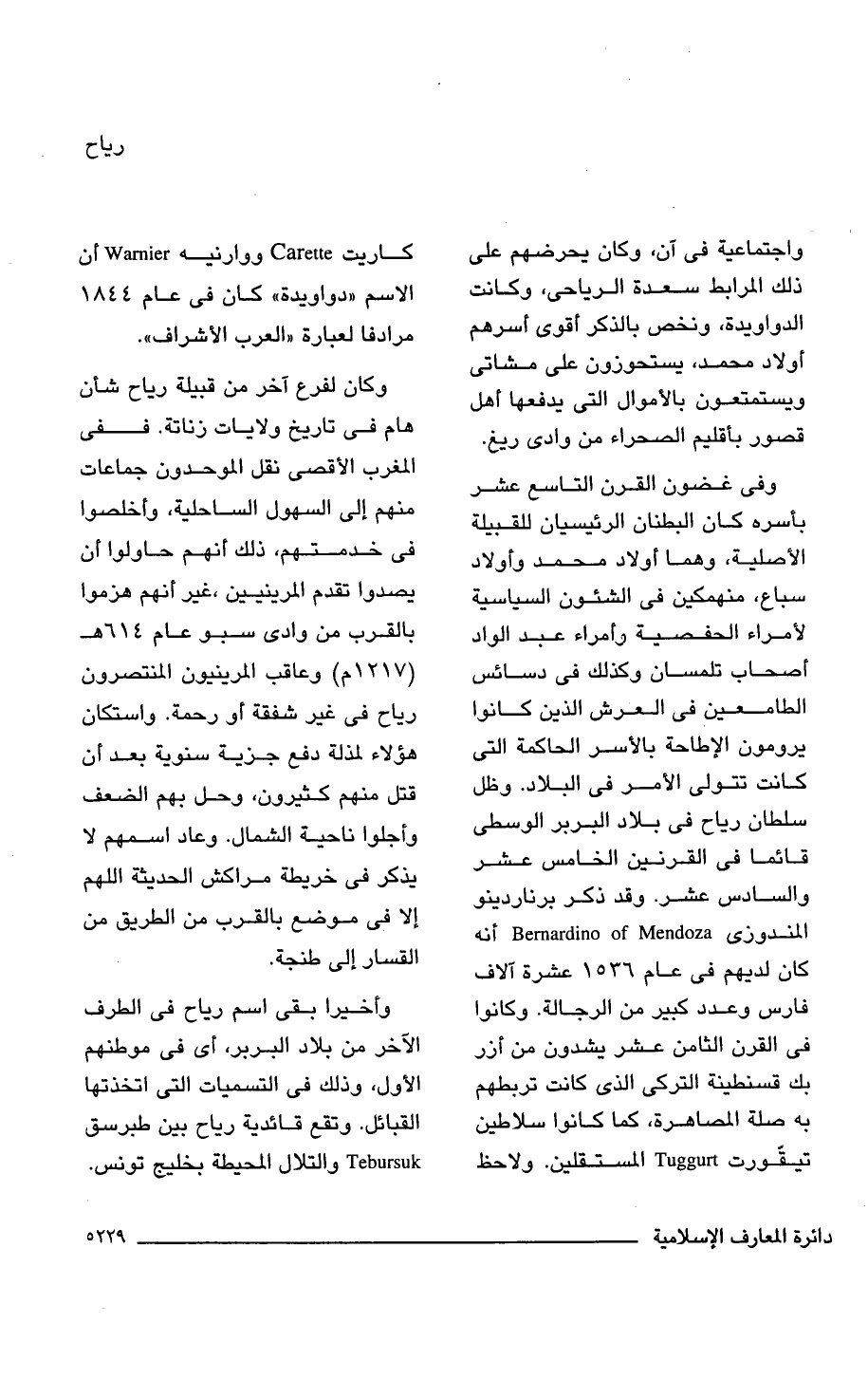 وأخيرا بقى اسم رياح فى الطرف الآخر من بلاد البربر، أى فى موطنهم الأول، وذلك فى التسميات التى اتخذتها القبائل. وتقع قائدية رياح بين طبرسق Tebursuk والتلال المحيطة بخليج تونس.