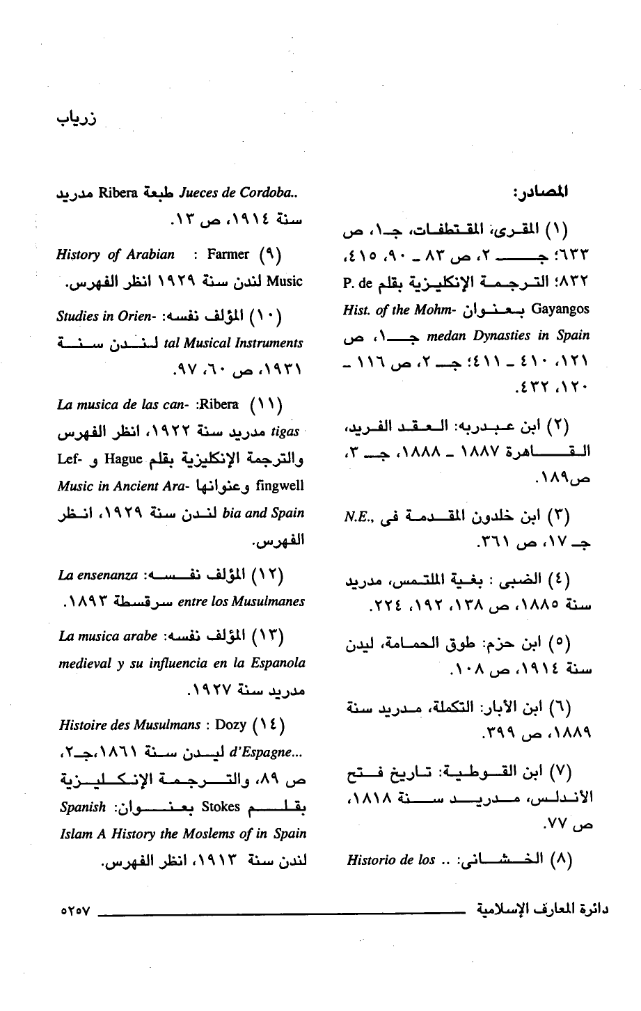 (9) History of Arabian Music: Farmer لندن سنة 1929 انظر الفهرس.