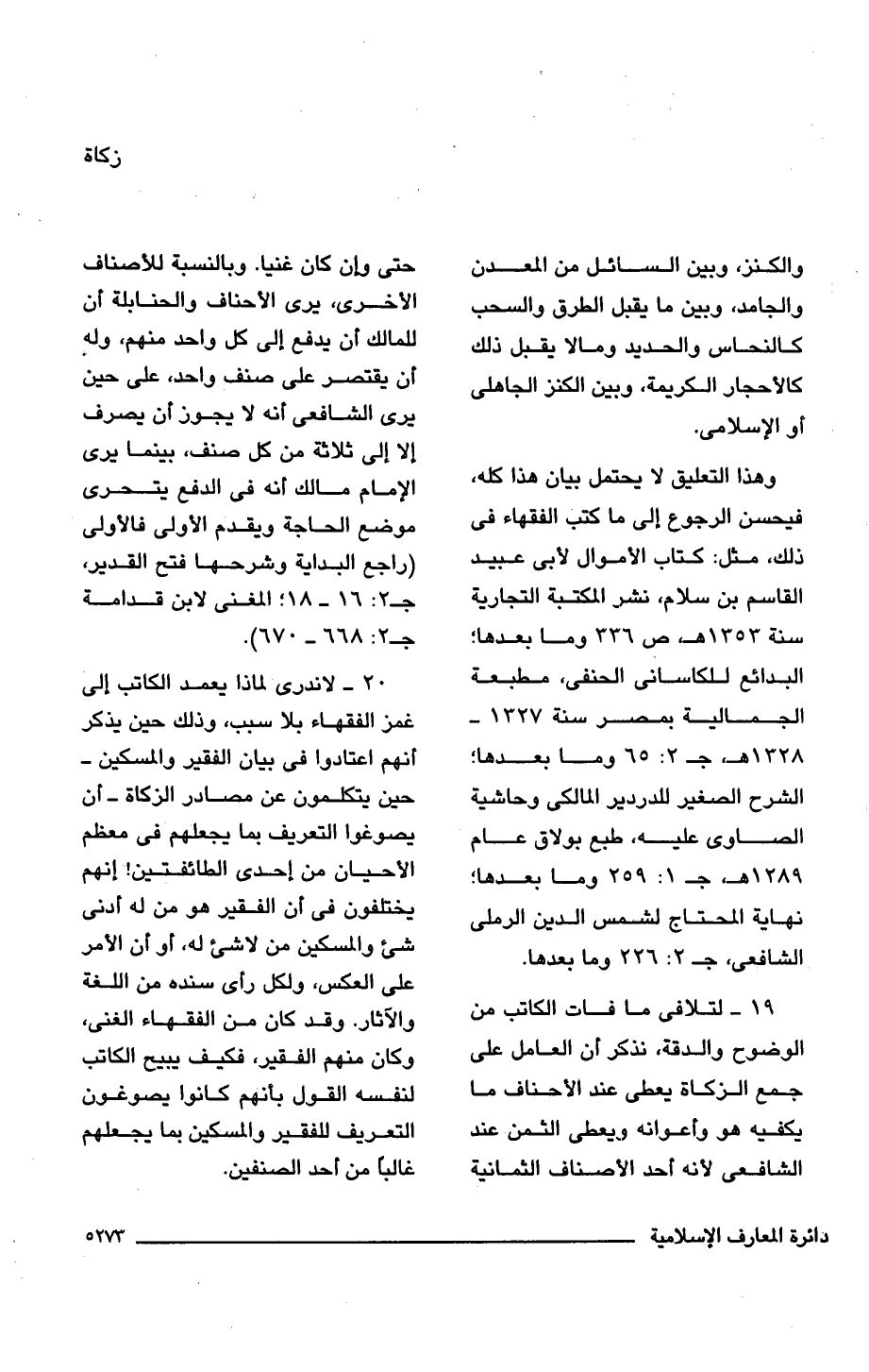 وهذا التعليق لا يحتمل بيان هذا كله، فيحسن الرجوع إلى ما كتب الفقهاء فى ذلك، مثل: كتاب الأموال لأبى عبيد القاسم بن سلام، نشر المكتبة التجارية سنة 1353 هـ، ص 336 وما بعدها؛ البدائع للكاسانى الحنفى، مطبعة الجمالية بمصر سنة 1327 - 1328 هـ، جـ 2: 65 وما بعدها؛ الشرح الصغير للدردير المالكى وحاشية الصاوى عليه، طبع بولاق عام 1289 هـ، جـ 1: 259 وما بعدها؛ نهاية المحتاج لشمس الدين الرملى الشافعى، جـ 2: 226 وما بعدها.