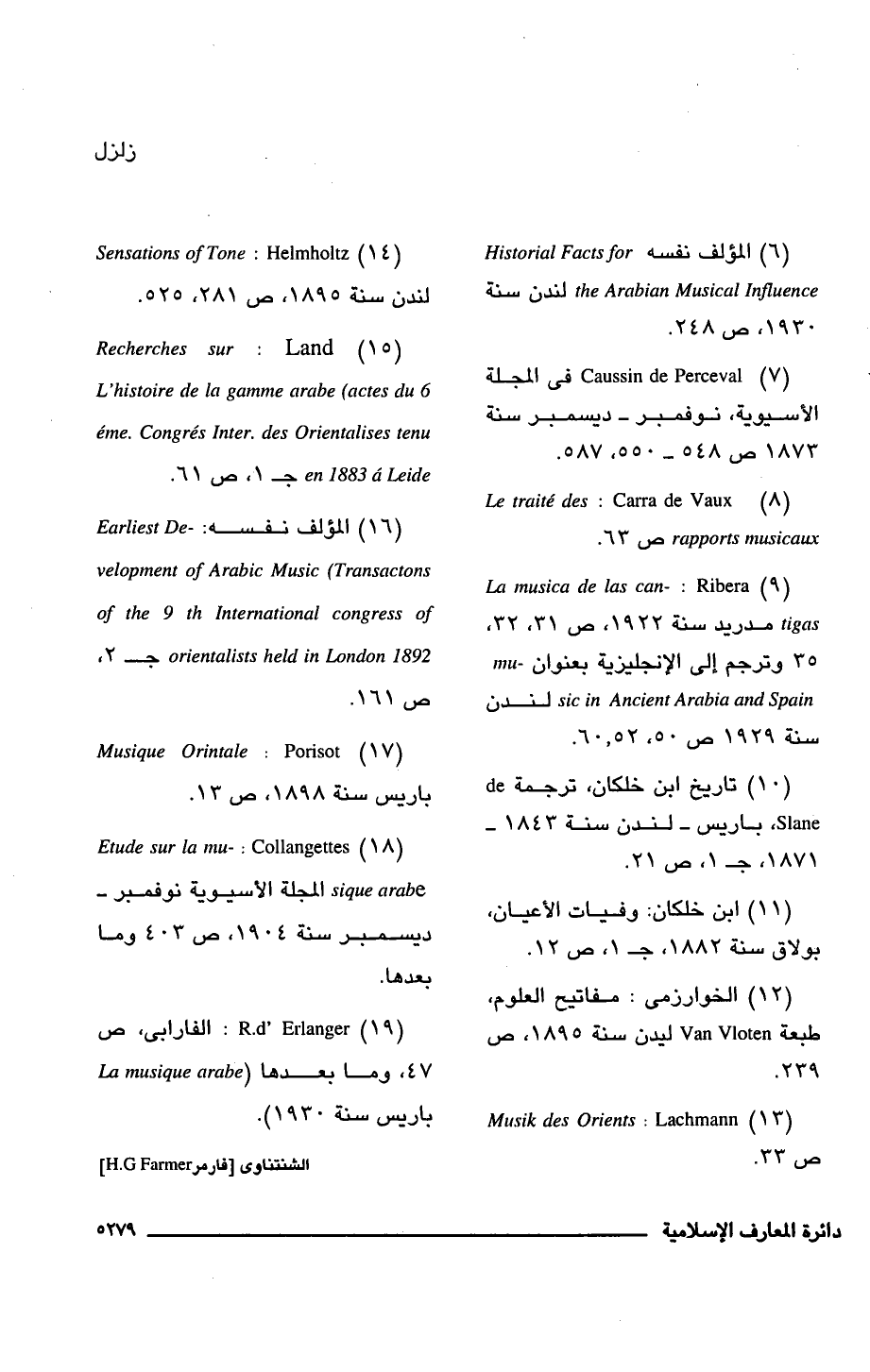(19) R.d' Erlanger: الفارابى، ص 74، وما بعدها (La musique arabe باريس سنة 1930).