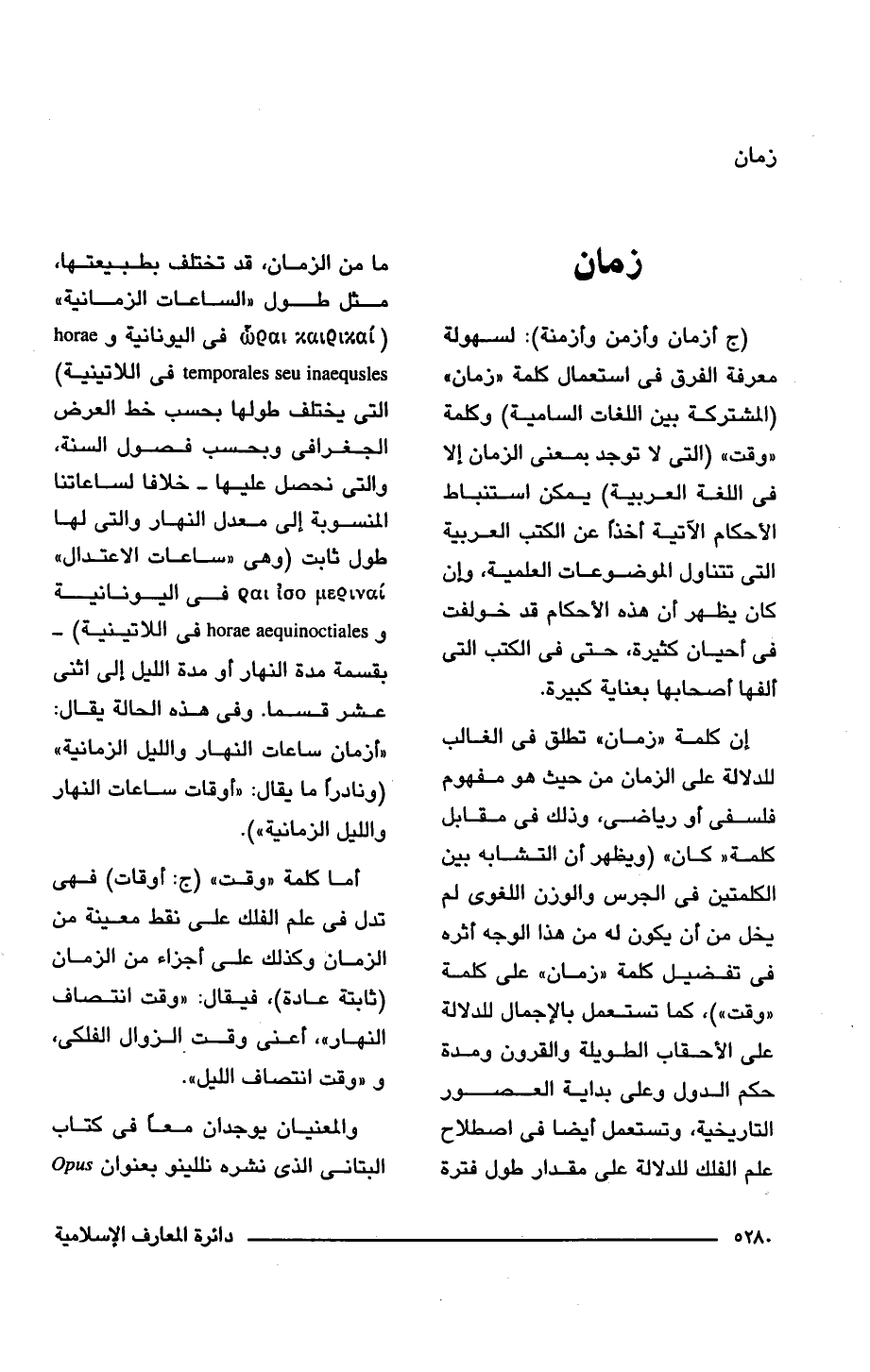 (ج أزمان وأزمن وأزمنة): لسهولة معرفة الفرق فى استعمال كلمة "زمان" (المشتركة بين اللغات السامية) وكلمة "وقت" (التى لا توجد بمعنى الزمان إلا فى اللغة العربية) يمكن استنباط الأحكام الآتية أخذًا عن الكتب العربية التى تتناول الموضوعات العلمية، فإن كان يظهر أن هذه الأحكام قد خولفت فى أحيان كثيرة، حتى فى الكتب التى ألفها أصحابها بعناية كبيرة.