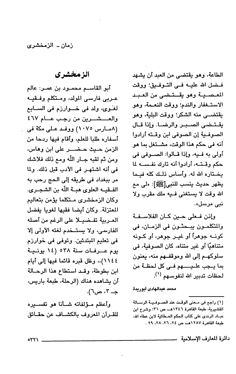 (¬1) راجع فى معنى الوقت عند الصوفية الرسالة القشيرية، طبعة القاهرة 1346 هـ، ص 31؛ وشرح ابن عباد الرندى على كتاب الحكم العطائية لابن عطاء اللَّه، طبعة القاهرة 1287 هـ، ص 24، 26، 28، 29.
