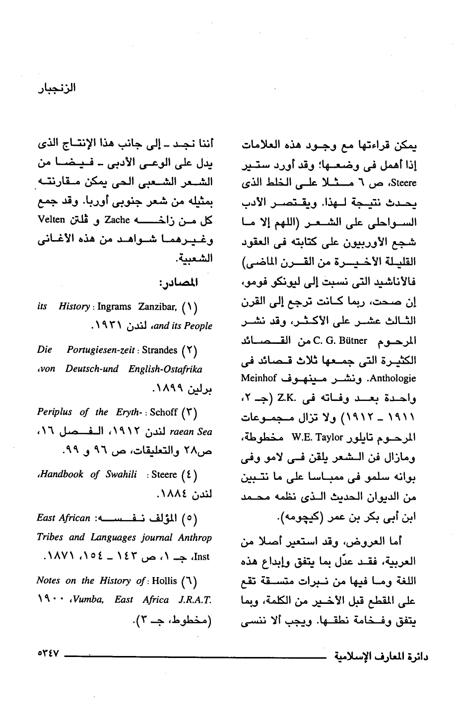 (1) its History: Ingrams Zanzibar and its People، لندن 1931.