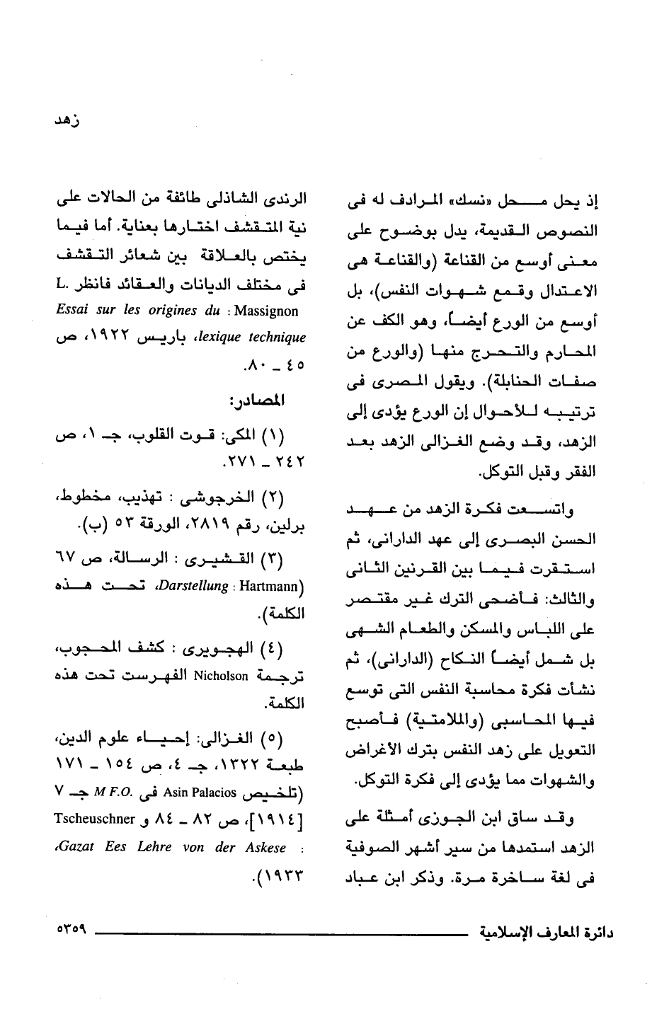 (5) الغزالى: إحياء علوم الدين، طبعة 1322، جـ 4، ص 154 - 171 (تلخيص Asin Palacios فى M F.O جـ 7 [1914]، ص 82 - 84 و Tscheuscjner: Gazat Ees Lehre von der Askese, 1933).