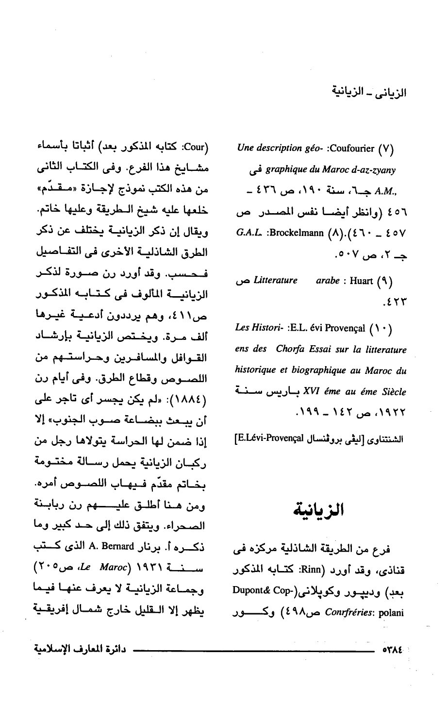 (7) Une description geographique du Maroc d-az-zyany: Coufourier في A.M, جـ 6، سنة 190، ص 436 - 456 (وانظر أيضا نفس المصدر ص 457 - 460).