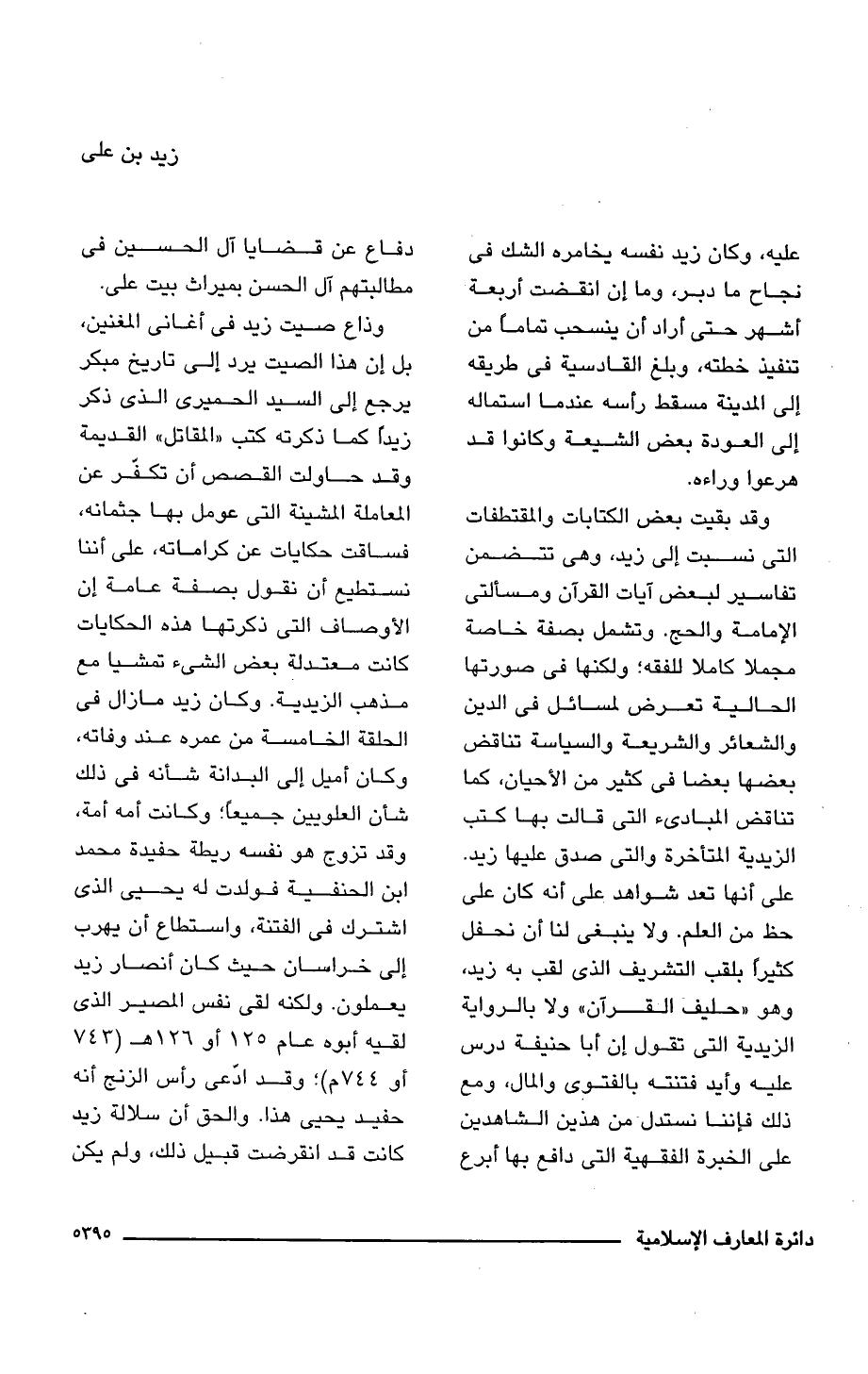 عليه، وكان زيد نفسه يخامره الشك فى نجاح ما دبر، وما إن انقضت أربعة أشهر حتى أراد أن ينسحب تمامًا من تنفيذ خطته، وبلغ القادسية فى طريقه إلى المدينة مسقط رأسه عندما استماله إلى العودة بعض الشيعة وكانوا قد هرعوا وراءه.