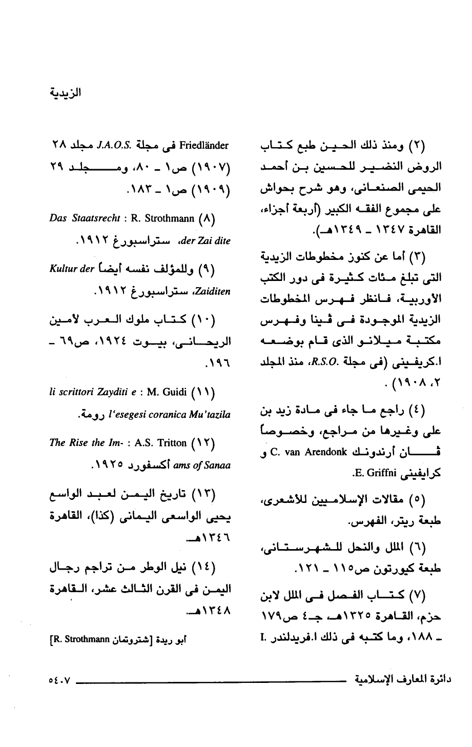 (3) أما عن كنوز مخطوطات الزيدية التى تبلغ مئات كثيرة فى دور الكتب الأوربية، فانظر فهرس المخطوطات الزيدية الموجودة فى فينا وفهرس مكتبة ميلانو الذى قام بوضعه أ. كريفينى (فى مجلة R.S.O، منذ المجلد 2، 1908).