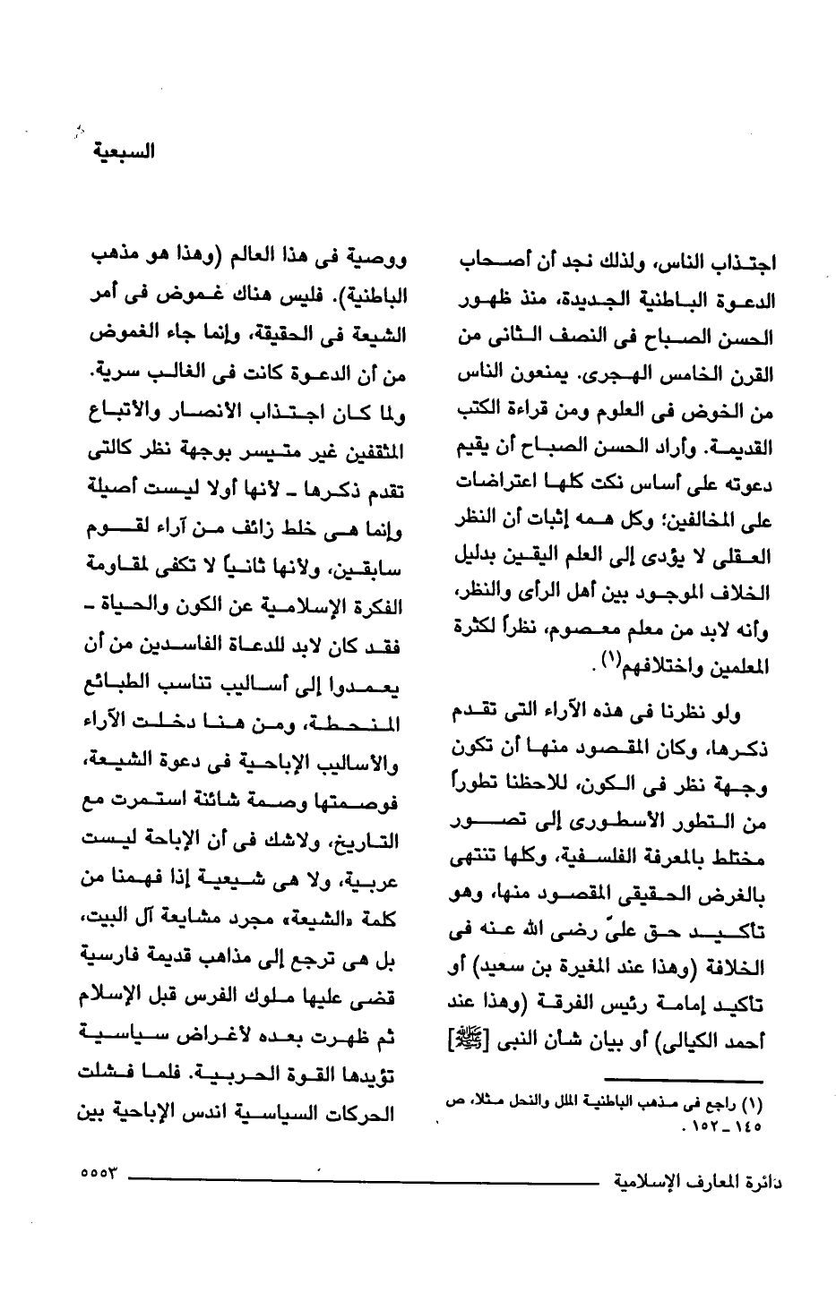 (¬1) راجع فى مذهب الباطنية الملل والنحل مثلا، ص 145 - 152.