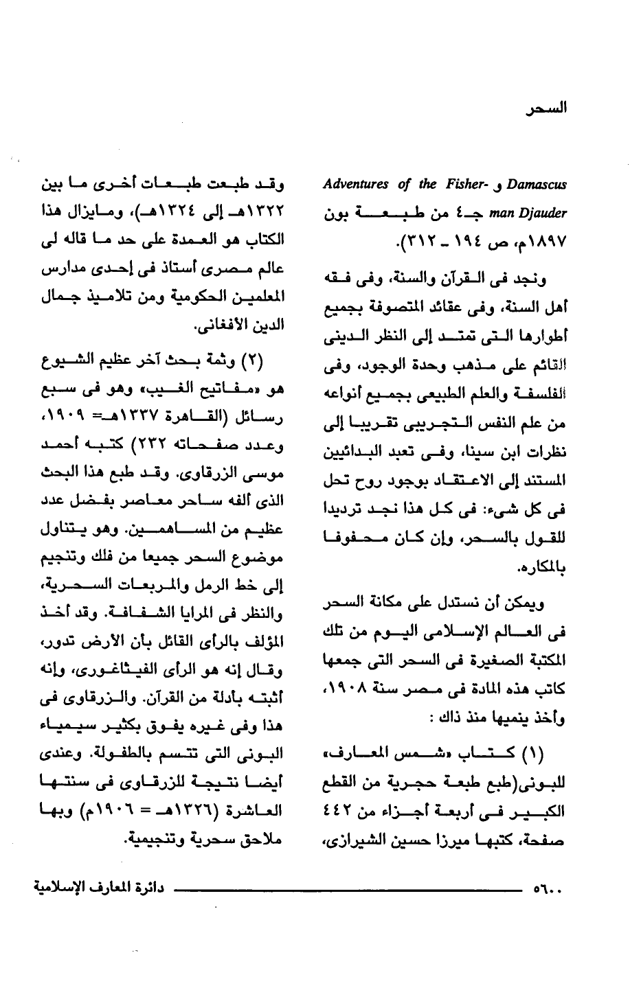 (1) كتاب "شمس المعارف" للبونى (طبع طبعة حجرية من القطع الكبير فى أربعة أجزاء من 442 صفحة، كتبها ميرزا حسين الشيرازى، وقد طبعت طبعات أخرى ما بين 1322 هـ إلى 1324)، وما يزال هذا الكتاب هو العمدة على حد ما قاله لى عالم مصرى أستاذ فى إحدى مدارس المعلمين الحكومية ومن تلاميذ جمال الدين الأفغانى.