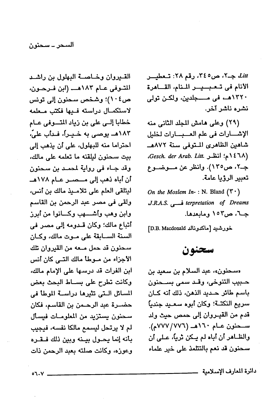 (30) On the Moslem Interpretation of Dreams: N. Bland فى J.R.A.S جـ 6، ص 153 وما بعدها.
