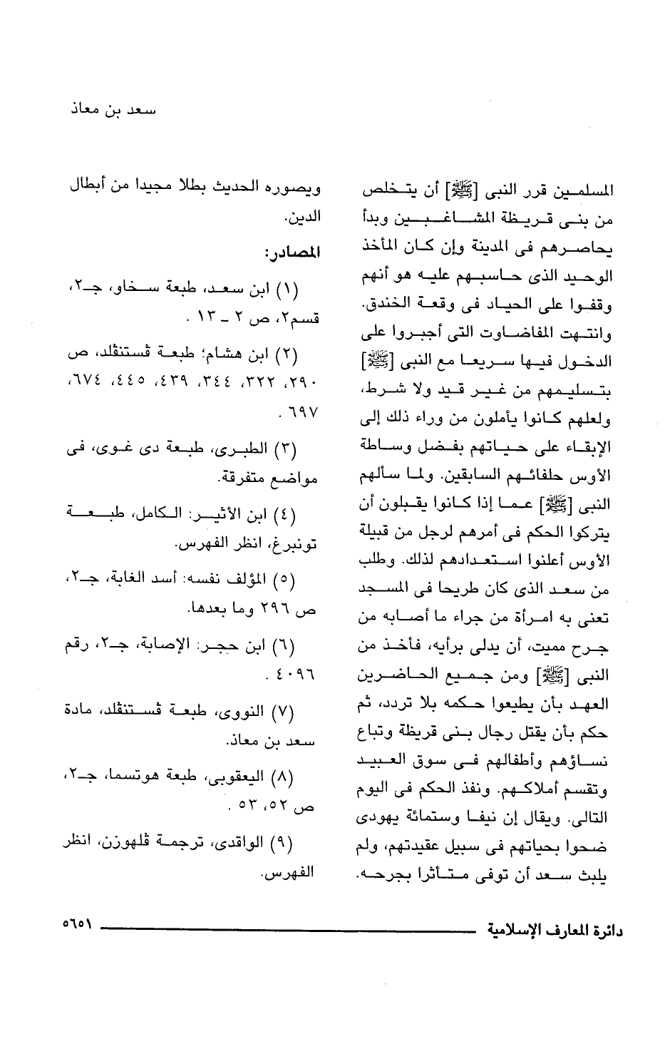 (7) النووى، طبعة فستنفلد، مادة سعد بن معاذ.