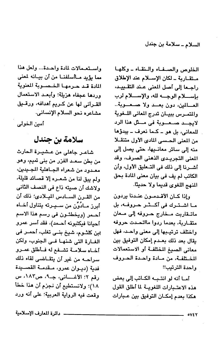 أما أنه لو انتبه الكاتب إلى بعض هذه الاعتبارات اللغوية لما أطلق القول هكذا بعدم إمكان التوفيق بين عبارات واستعمالات لمادة واحدة. . . ولعل هذا مما يؤيد ما أسلفنا من أن بيانه لمعنى المادة قد حرمها الخصوبة المعنوية وردها عجفاء هزيلة؛ وأبعد الاستعمال القرآنى لها عن كريم أهدافه، ورقيق مشاعره نحو السلام الإنسانى.