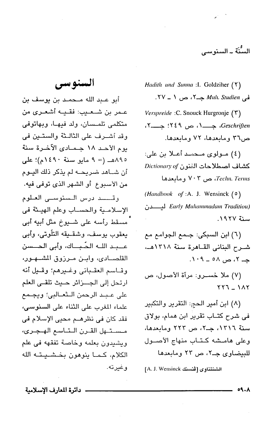 (5) (Handbook of Early Muhanunaduin Traditiou: A. J. Wensinck)، ليدن سنة 1927.