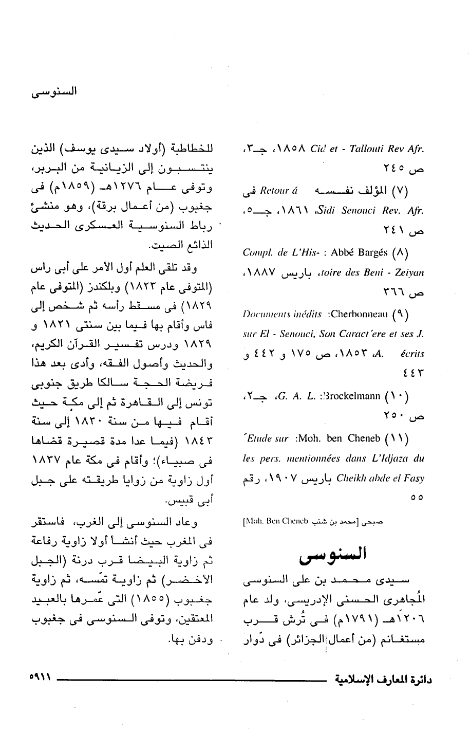 (9) Documents inedits Sur, El - Senouci. Son Caract'ere et ses J.A. ecrits: Cherbonneau، 1853, ص 175 و 442 و 443.