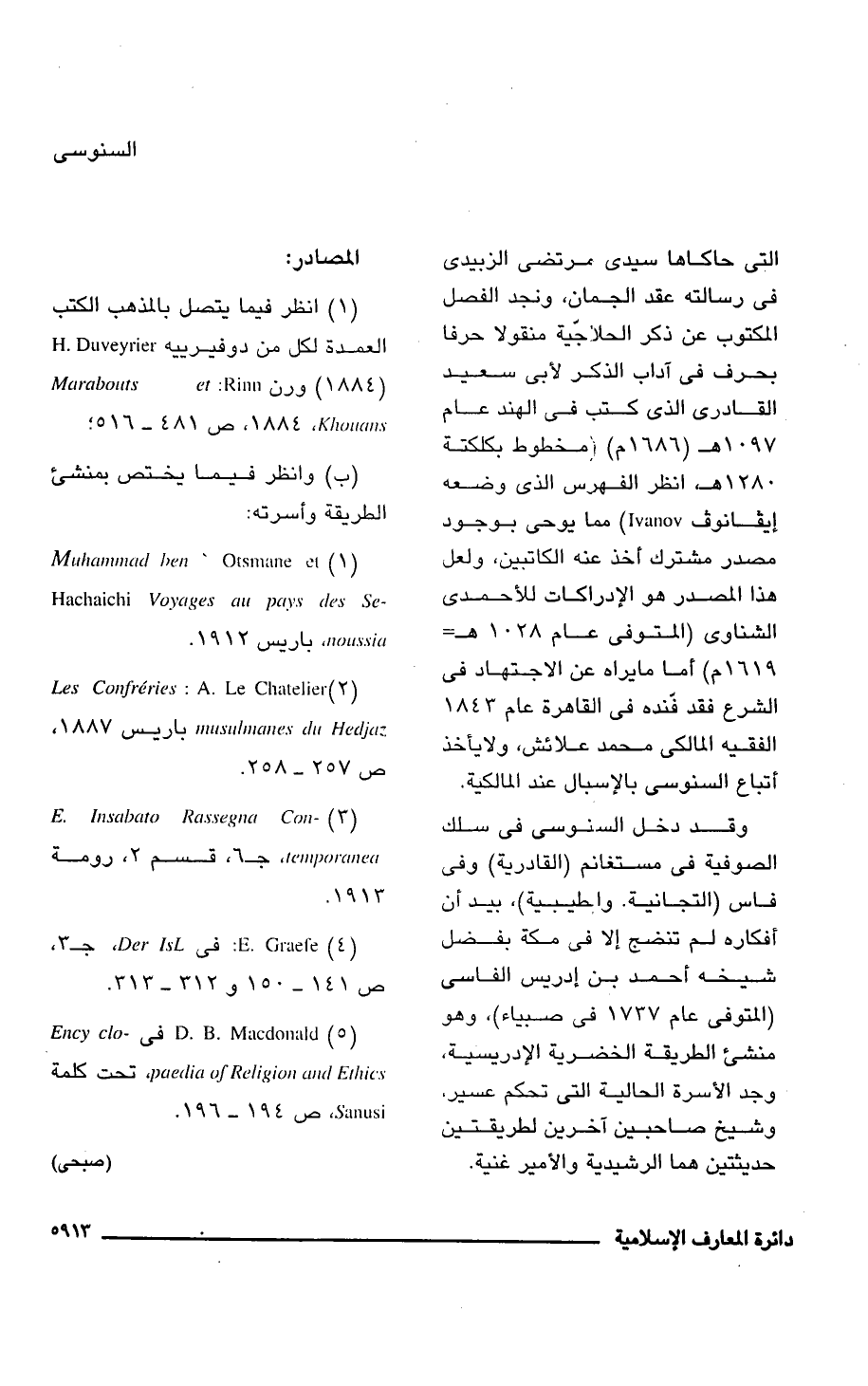 (5) D. B. Macdonald فى Encyclopaedia of Religion and Ethics, تحت كلمة , Sanusi ص 194 - 196.
