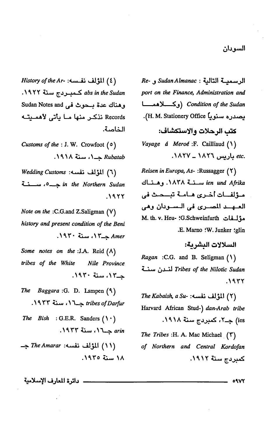 (2) المؤلف نفسه: The Kabaish, a Sudan-Arab tribe Harvard African Studties)) جـ 2، كمبردج سنة 1918.
