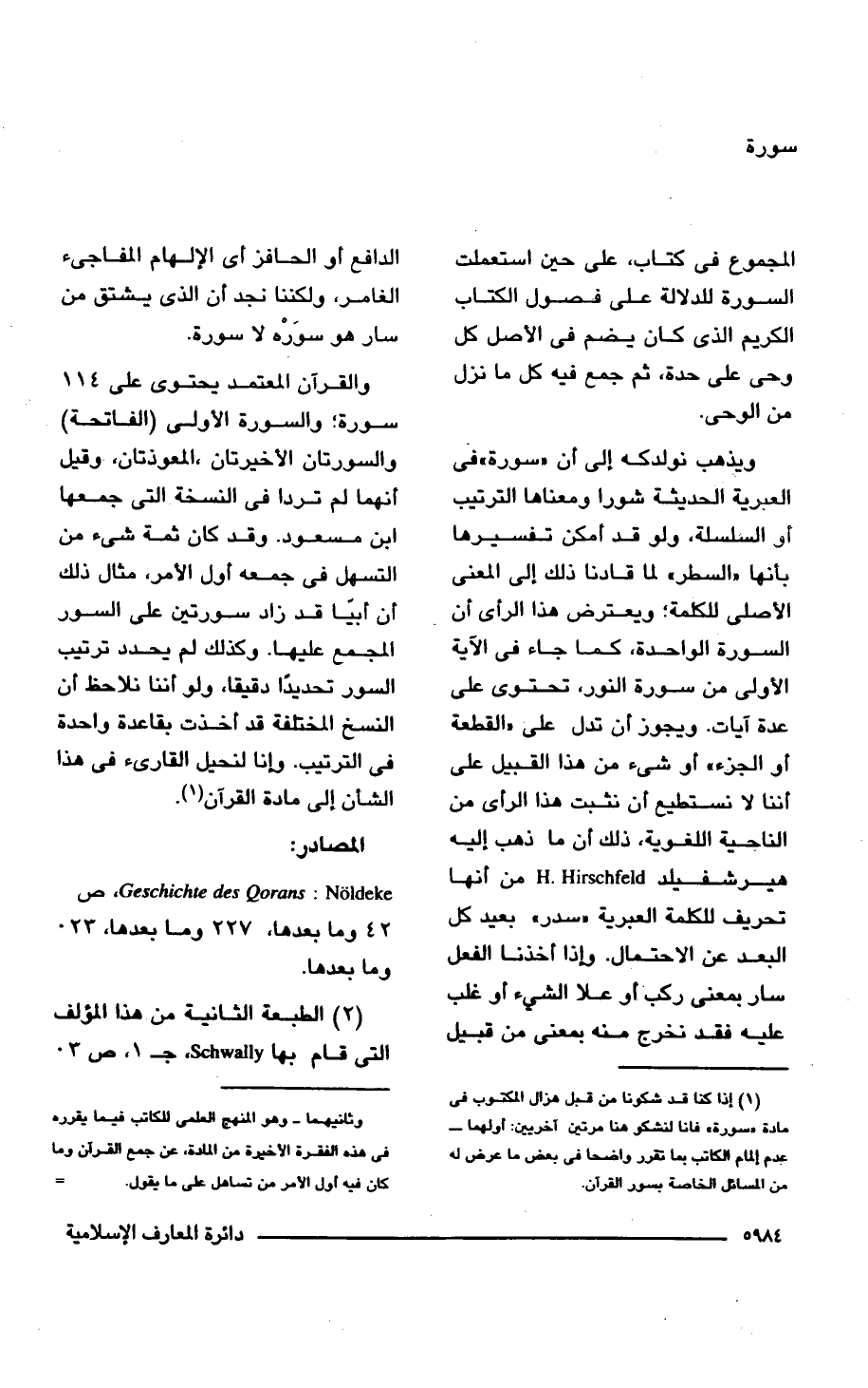 (¬1) إذا كنا قد شكونا من قبل هزال المكتوب فى مادة "سورة" فإنا لنشكو هنا مرتين أخريين: أولهما- عدم إلمام الكاتب بما تقرر واضحا فى بعض ما عرض له من المسائل الخاصة بسور القرآن.