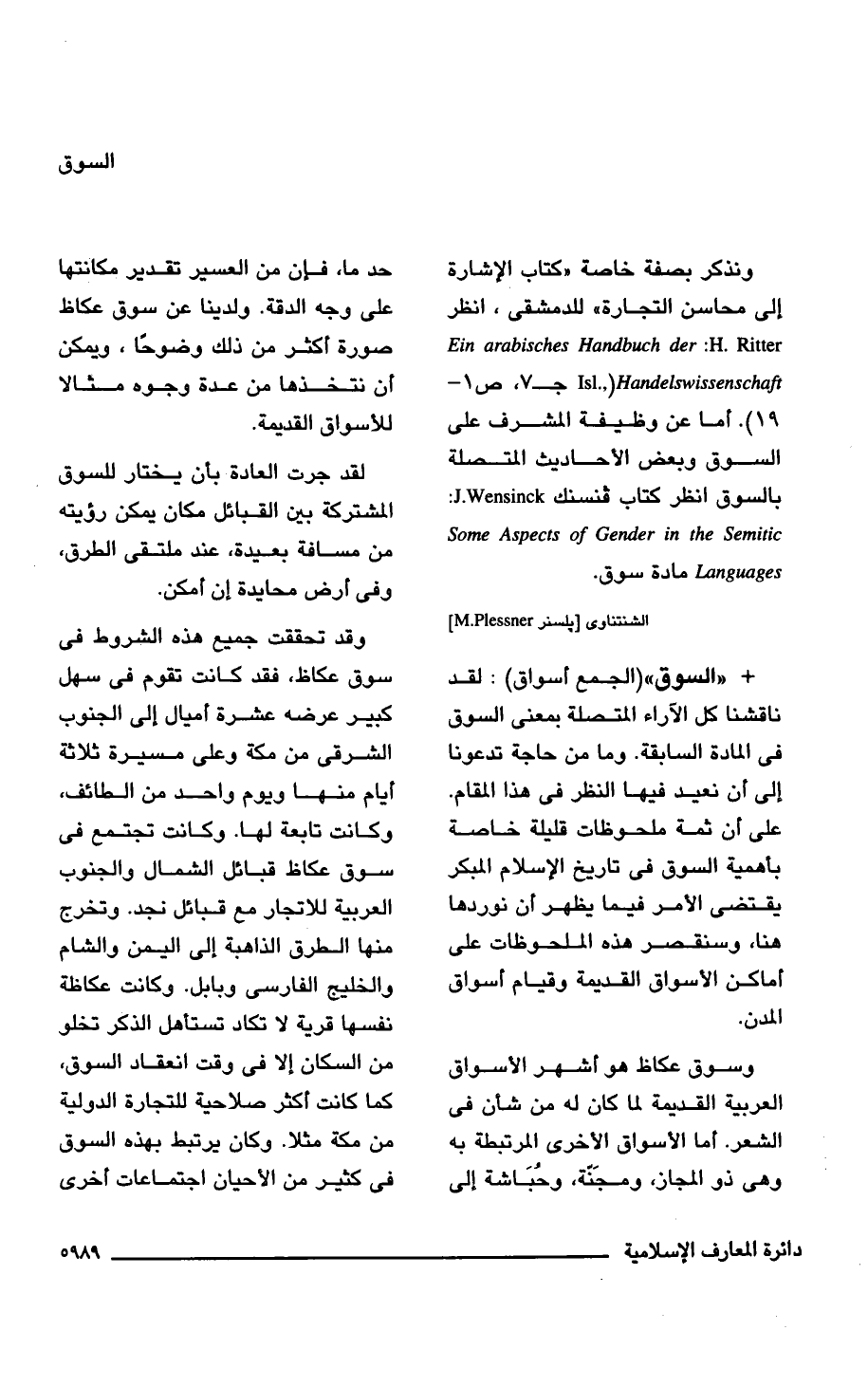 ونذكر بصفة خاصة "كتاب الإشارة إلى محاسن التجارة" للدمشقى، انظر Ein arabisches Handbuch der Handelswissenschaft: H. Ritter (Isl جـ 7، ص 1 - 19). أما عن وظيفة المشرف على السوق وبعض الأحاديث المتصلة بالسوق انظر كتاب فنسنك J.Wensinck: Aspects of Gender in the Semitic Some Languages مادة سوق.