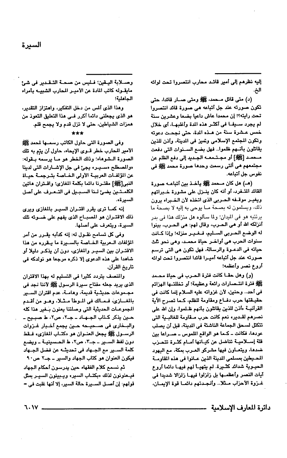 (و) وهل حقا كانت فترة الحرب فى حياة محمد -صلى اللَّه عليه وسلم- فترة انتصارات رائعة وعظيمة! أو تخللتها الهزائم فى أحد. . وحنين, لأن غزواته عليه السلام إنما كانت فى حقيقتها حرب دفاع ومقاومة للظلم، كما تصرح الآية القرآنية {أُذِنَ لِلَّذِينَ يُقَاتَلُونَ بِأَنَّهُمْ ظُلِمُوا وَإِنَّ اللَّهَ عَلَى نَصْرِهِمْ لَقَدِيرٌ} نعم كانت حرب مقاومة للغالبية التى تتكتل لسحق الجماعة الناشئة فى المدينة، قبل أن يصلب عودها، فكانت -كما هو الواقع الملموس- صراعا بين قلة إسلامية تناضل عن كيانها أمام كثرة تتحزب ضدها، ويتعاون فيها مشركو العرب بمكة، مع اليهود المحيطين بمسلمى المدينة الذين عانوا فى هذه المقاومة الحيوية شدائد كثيرة. لم يتهيأ لهم فيها دائما أروع آيات النصر وأعظمها بل زلزلوا فيها زلزالا شديدًا فى غزوة الأحزاب مثلًا. . وأنجدتهم دائما قوة الإيمان, وصلابة اليقين؛ فليس من صحة التقدير فى شئ ما يقوله كاتب المادة عن الأمير المحارب الشبيه بأمراء الجاهلية!