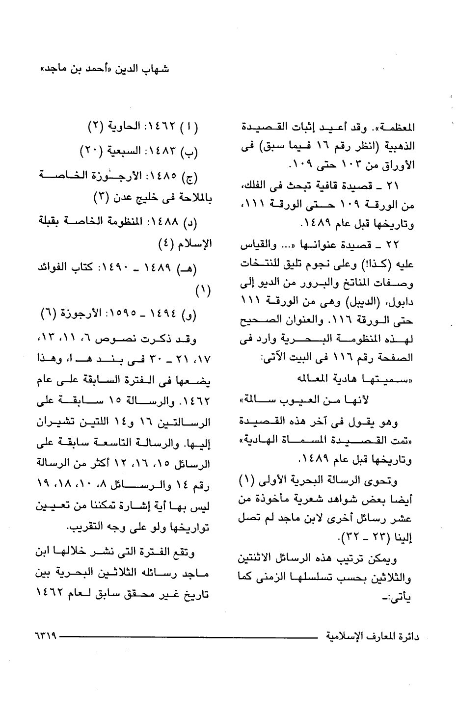 وتقع الفترة التى نشر خلالها ابن ماجد رسائله الثلاثين البحرية بين تاريخ غير محقق سابق لعام 1462