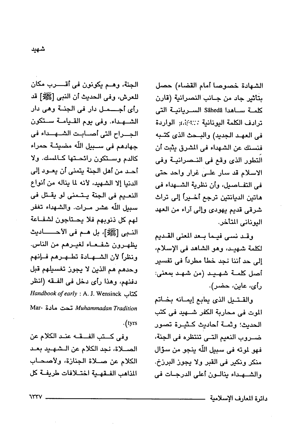 وقد نسى فيما بعد المعنى القديم لكلمة شهيد، وهو الشاهد فى الإسلام، إلى حد أننا نجد خطأ مطردًا فى تفسير أصل كلمة شهيد (من شهد بمعنى: رأى، عاين، حضر).