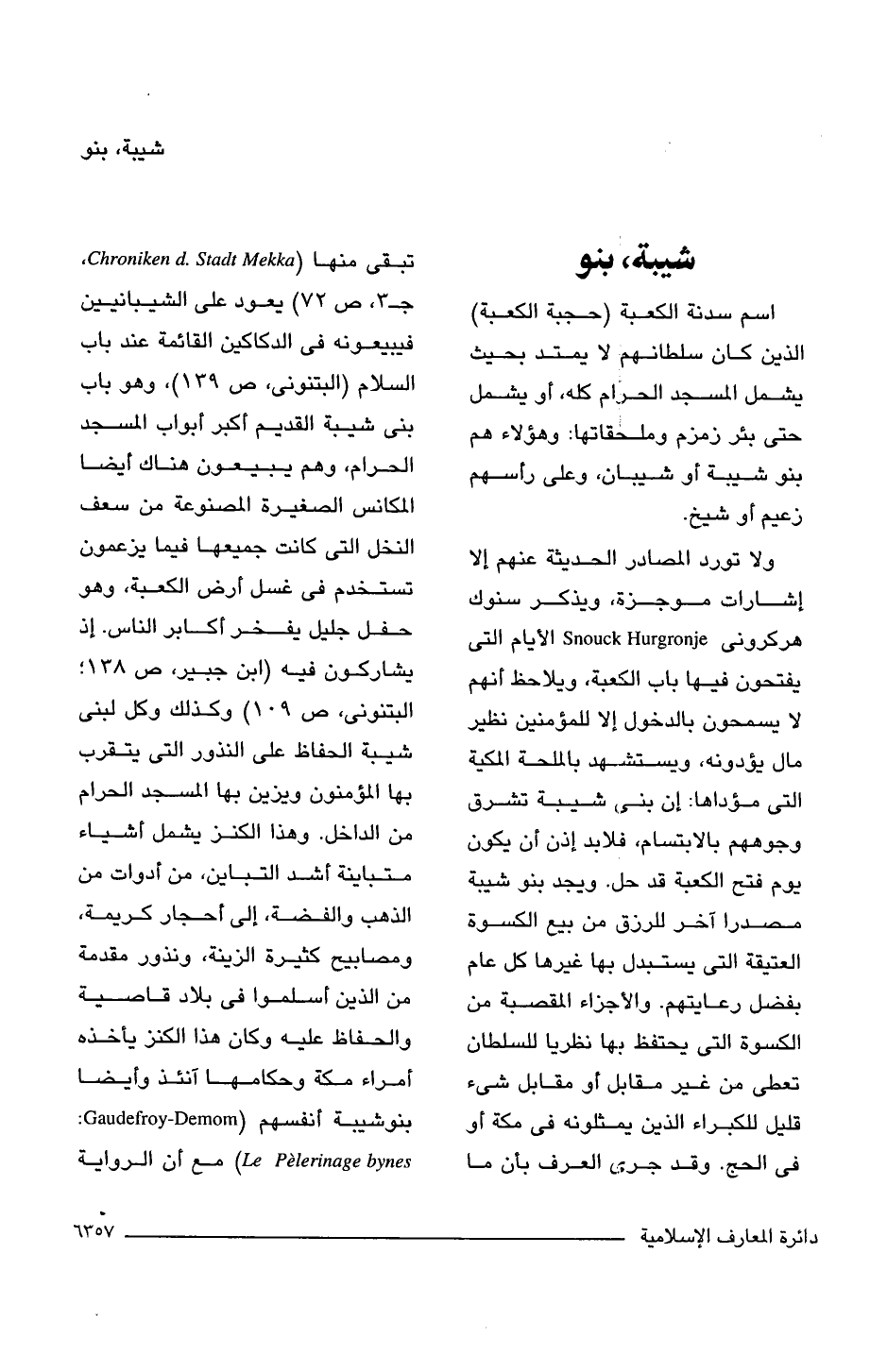 اسم سدنة الكعبة (حجبة الكعبة) الذين كان سلطانهم لا يمتد بحيث يشمل المسجد الحرام كله، أو يشمل حتى بئر زمزم وملحقاتها: وهؤلاء هم بنو شيبة أو شيبان، وعلى رأسهم زعيم أو شيخ.