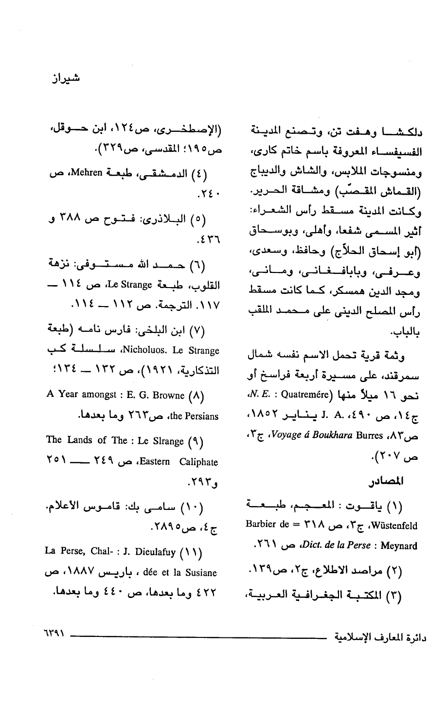 (7) ابن البلخى: فارس نامه (طبعة Nicholuos. Le Strange, سلسلة كب التذكارية، 1921)، ص 132 - 134