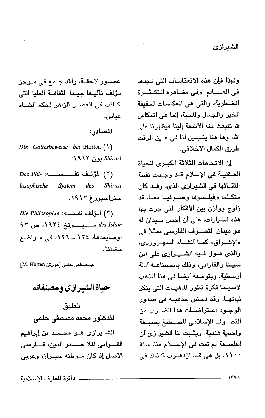 (2) المؤلف نفسه: Das philosophische System des Shirazi ستراسبورغ 1913.