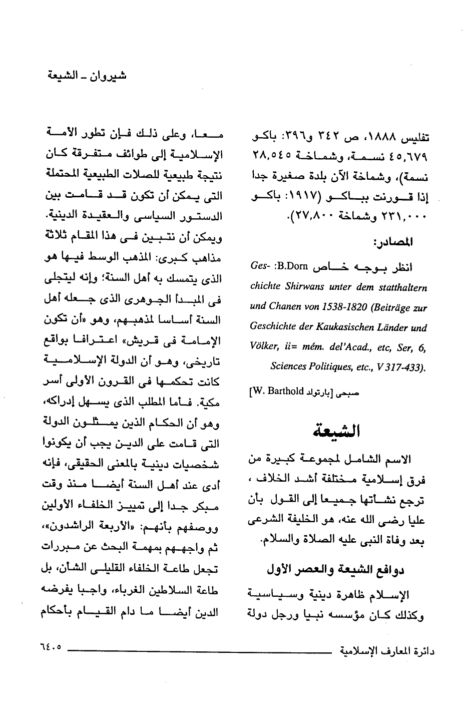 انظر بوجه خاص Gesstatthaltern Shirwans unter dem chichte und Chanen von 1538 - 1820 (Beitrage zur Geschichte der Kaukasischen Lander und Volker, ii = mem.del'Acad,etc,Ser,6,Sciences Politiques, etc.,V 317 - 344): B.Dorn