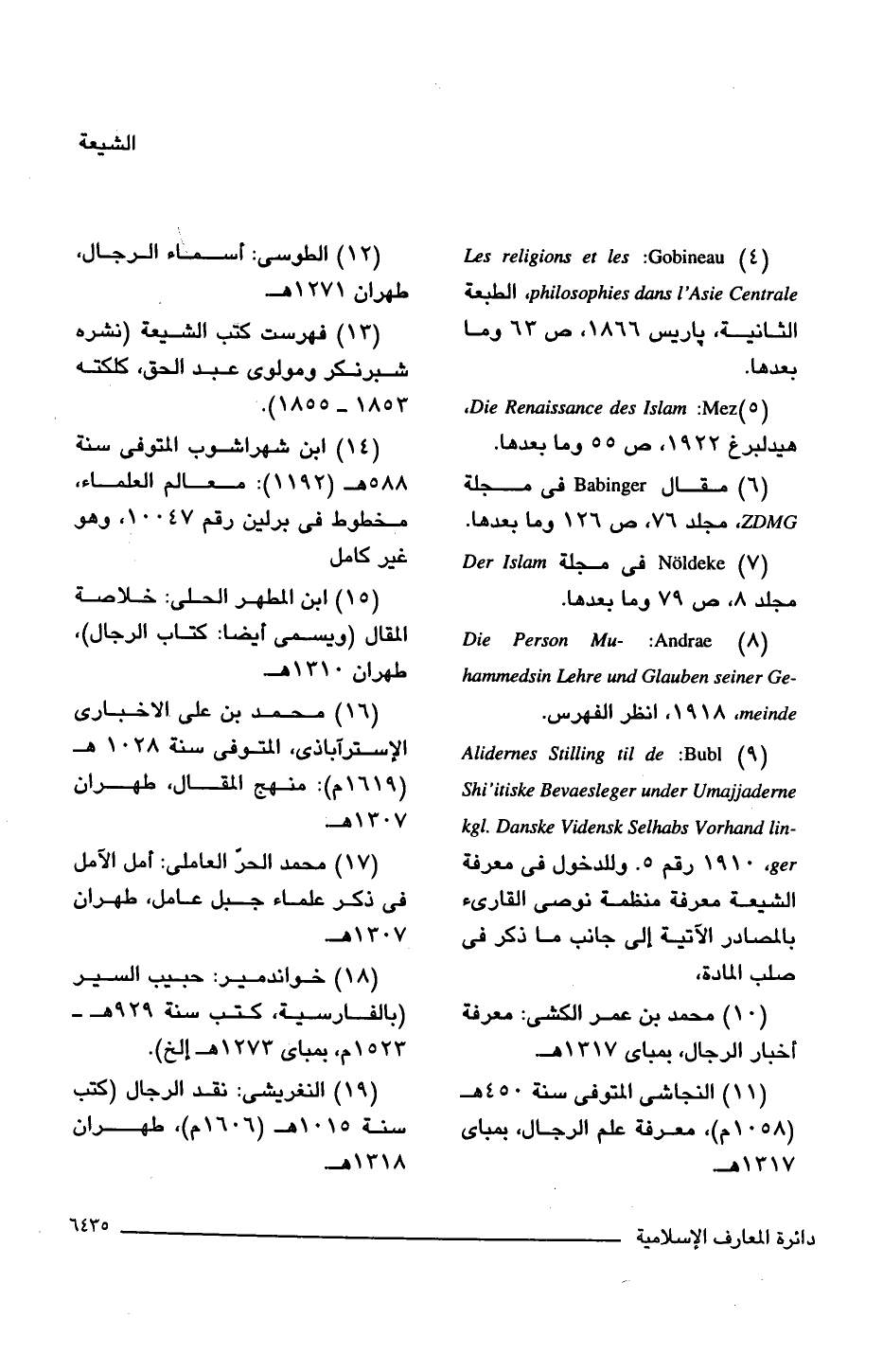 (9) Alidernes Stilling til de Shi'itiske Bevaesleger under Umajjaderne kgl. Danske Vidensk Selhabs Vorhand linger: BubI، 1910 رقم 5. وللدخول فى معرفة الشيعة معرفة منظمة نوصى القارئ بالمصادر الآتية إلى جانب ما ذكر فى صلب المادة