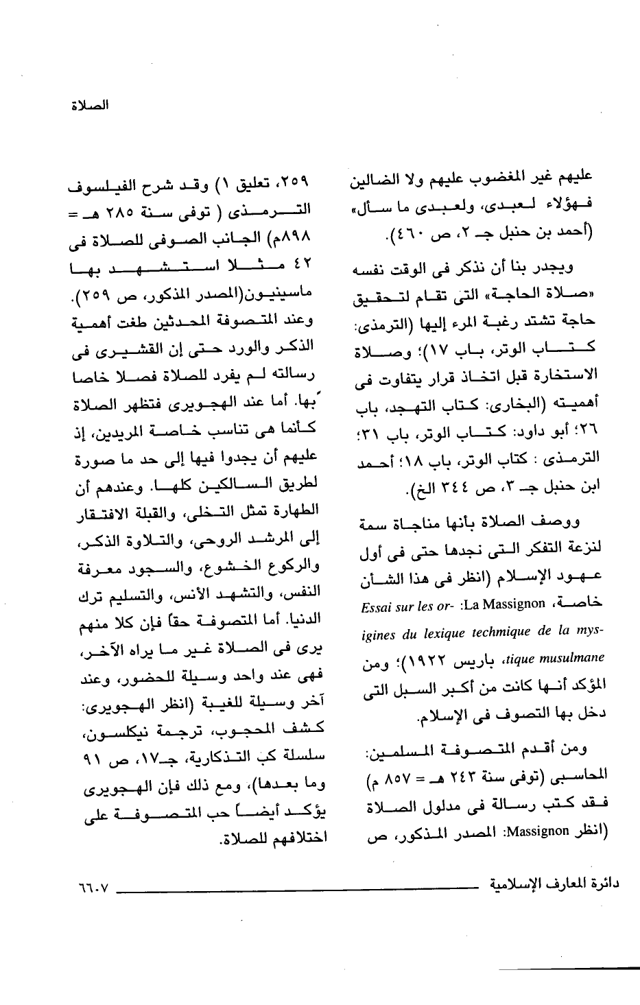 ووصف الصلاة بأنها مناجاة سمة لنزعة التفكر التى نجدها حتى فى أول عهود الإسلام (انظر فى هذا الشأن خاصة Essai sur les origines du lexique techmique de la mystique musulmane: La Massignon, باريس 1922)؛ ومن المؤكد أنها كانت من أكبر السبل التى دخل بها التصوف فى الإسلام.
