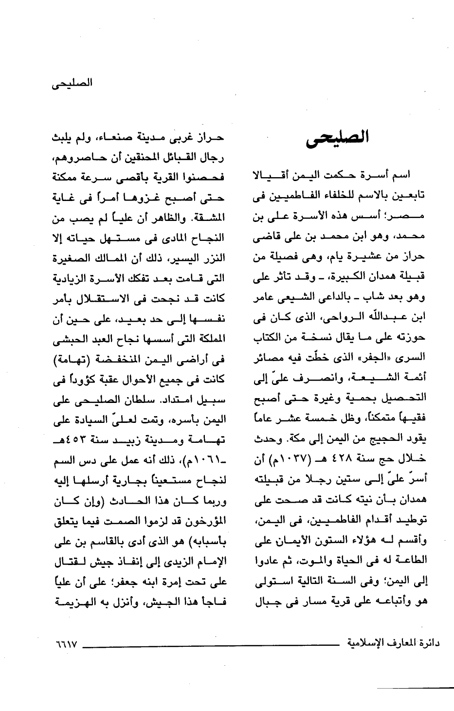 اسم أسرة حكمت اليمن أقيالا تابعين بالاسم للخلفاء الفاطميين فى مصر؛ أسس هذه الأسرة على بن محمد، وهو ابن محمد بن على قاضى حراز من عشيرة قيام، وهى فصيلة من قبيلة همدان الكبيرة، -وقد تأثر على وهو بعد شاب- بالداعى الشيعى عامر ابن عبد اللَّه الرواحى، الذى كان فى حوزته على ما يقال نسخة من الكتاب السرى "الجفر" الذى خطّت فيه مصائر أئمة الشيعة، وانصرف علىّ إلى التحصيل بحمية وغيرة حتى أصبح فقيهًا متمكنًا، وظل خمسة عشر عامًا يقول الحجيج من اليمن إلى مكة. وحدث خلال حج سنة 428 هـ (1037 م) أن أسرّ علىّ إلى ستين رجلًا من قبيلته همدان بأن نيته كانت قد صحت على توطيد أقدام الفاطميين، فى اليمن، وأقسم له هؤلاء الستون الأيمان على الطاعة له فى الحياة والموت، ثم عادوا إلى اليمن؛ وفى السنة التالية استولى هو وأتباعه على قرية مسار فى جبال حراز غربى مدينة صنعاء، ولم يلبث رجال القبائل المحنقين أن حاصروهم، فحصنوا القرية بأقصى سرعة ممكنة حتى أصبح غزوها أمرًا فى غاية المشقة. والظاهر أن عليا لم يصب من النجاح المادى فى مستهل حياته إلا النزر اليسير، ذلك أن الممالك الصغيرة التى قامت بعد تفكك الأسرة الزيادية كانت قد نجحت فى الاستقلال بأمر نفسها إلى حد بعيد، على حين أن المملكة التى أسسها نجاح العبد الحبشى فى أراضى اليمن المنخفضة (تهامة) كانت فى جميع الأحوال عقبة كؤودًا فى سبيل امتداد. سلطان الصليحى على اليمن بأسره، وتمت لعلى السيادة على تهامة ومدينة زبيد سنة 453 هـ (1061 م)، ذلك أنه عمل على دس السم لنجاح مستعينا بجارية أرسلها إليه وربما كان هذا الحادث (وإن كان المؤرخون قد لزموا الصمت فيما يتعلق بأسبابه) هو الذى أدى بالقاسم بن على الإمام الزيدى إلى إنفاذ جيش لقتال على تحت إمرة ابنه جعفر؛ على أن عليا فاجأ هذا الجيش، وأنزل به الهزيمة