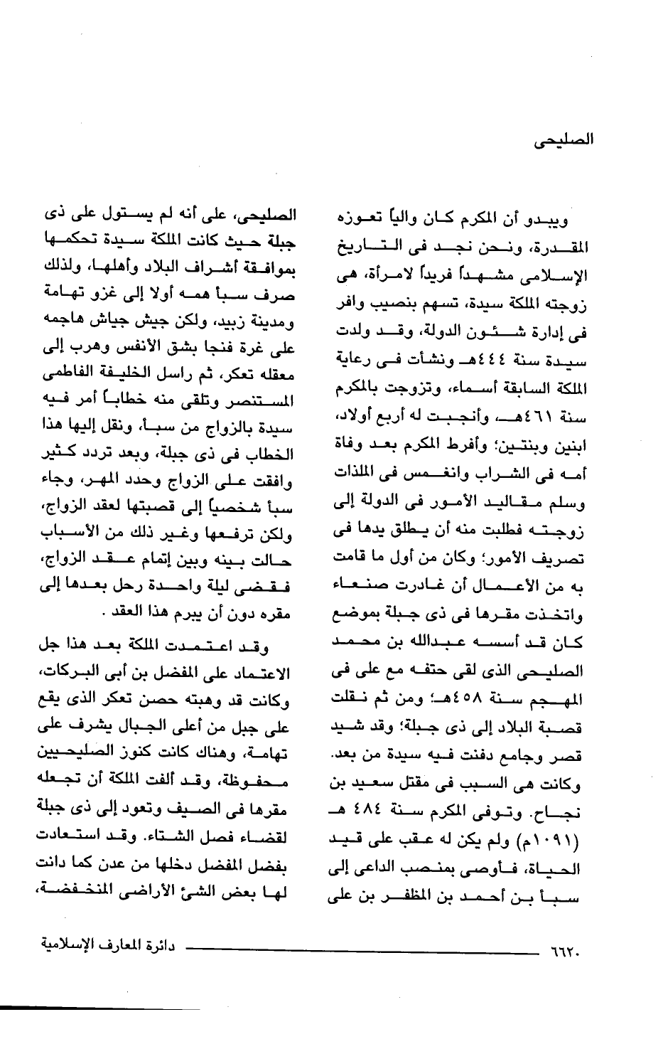 ويبدو أن المكرم كان واليًا تعوزه المقدرة، ونحن نجد فى التاريخ الإسلامى مشهد، فريدًا لامرأة، هى زوجته الملكة سيدة، تسهم بنصيب وافر فى إدارة شئون الدولة، وقد ولدت سيدة سنة ونشأت فى رعاية الملكة السابقة أسماء، وتزوجت بالمكرم سنة 461 هـ، وأنجبت له أربع أولاد، ابنين وبنتين؛ وأفرط المكرم بعد وفاة أمه فى الشراب وانغمس فى الملذات وسلم مقاليد الأمور فى الدولة إلى زوجته فطلبت منه أن يطلق يدها فى تصريف الأمور؛ وكان من أول ما قامت به من الأعمال أن غادرت صنعاء واتخذت مقرها فى ذى جبلة بموضع كان قد أسسه عبد اللَّه بن محمد الصليحى الذى لقى حتفه مع على فى المهجم سنة 458 هـ؛ ومن ثم نقلت قصبة البلاد إلى ذى جبلة؛ وقد شيد قصر وجامع دفنت فيه سيدة من بعد. وكانت هى السبب فى مقتل سعيد بن نجاح. وتوفى المكرم سنة 484 هـ (1091 م) ولم يكن له عقب على قيد الحياة، فأوصى بمنصب الداعى إلى سبأ بن أحمد بن المظفر بن على الصليحى، على أنه لم يستول على ذى جبلة حيث كانت الملكة سيدة تحكمها بموافقة أشراف البلاد وأهلها, ولذلك صرف سبأ همه أولًا إلى غزو تهامة ومدينة زبيد، ولكن جيش جياش هاجمه على غرة فنجا بشق الأنفس وهرب إلى معقله تعكر، ثم راسل الخليفة الفاطمى المستنصر وتلقى منه خطابا أمر فيه سيدة بالزواج من سبأ، ونقل إليها هذا الخطاب فى ذى جبلة، وبعد تردد كثير وافقت على الزواج وحدد المهر، وجاء سبأ شخصيًا إلى قصبتها لعقد الزواج، ولكن ترفعها وغير ذلك من الأسباب حالت بينه وبين إتمام عقد الزواج، فقضى ليلة واحدة رحل بعدها إلى مقره دون أن يبرم هذا العقد.