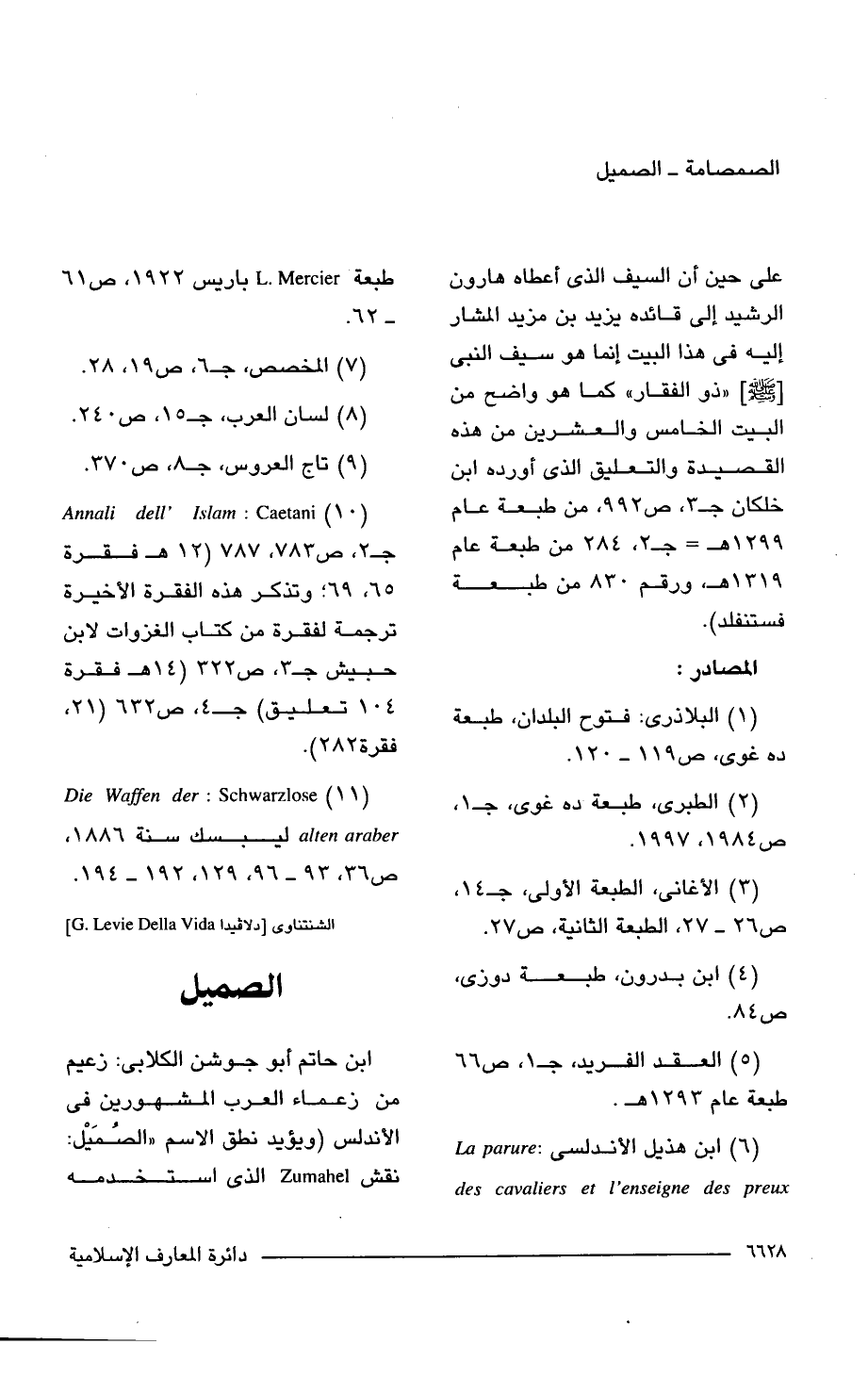 (10) Annali dell' Islam: Caetani جـ 2، ص 783, 787 (12 هـ فقرة 65, 69؛ وتذكر هذه الفقرة الأخيرة ترجمة لفقرة من كتاب الغزوات لابن حبيش جـ 3، ص 322 (14 هـ فقرة 104 تعليق) جـ 4، ص 632 (21، فقرة 282).