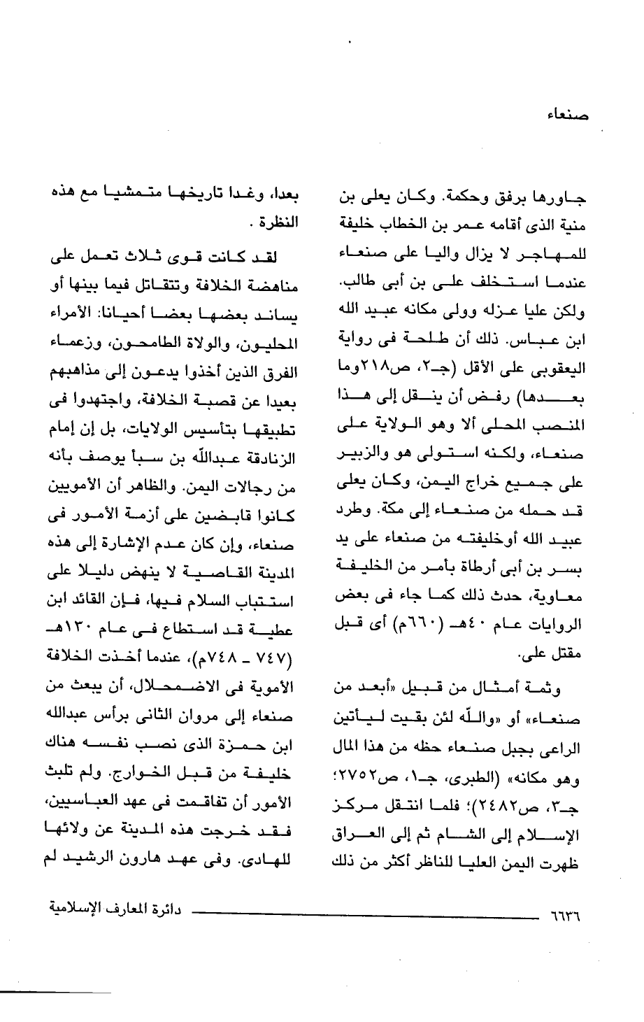 جاورها برفق وحكمة. وكان يعلى بن منية الذى أقامه عمر بن الخطاب خليفة للمهاجر لا يزال واليا على صنعاء عندما استخلف على بن أبى طالب. ولكن عليا عزله وولى مكانه عبيد اللَّه ابن عباس. ذلك أن طلحة فى رواية اليعقوبى على الأقل (جـ 2، ص 218 وما بعدها) رفض أن ينقل إلى هذا المنصب المحلى ألا وهو الولاية على صنعاء، ولكنه استولى هو والزبير على جميع خراج اليمن، وكان يعلى قد حمله من صنعاء إلى مكة. وطرد عبيد اللَّه أو خليفته من صنعاء على يد بسر بن أبى أرطاة بأمر من الخليفة معاوية، حدث ذلك كما جاء فى بعض الروايات عام 40 هـ (660 م) أى قبل مقتل على.