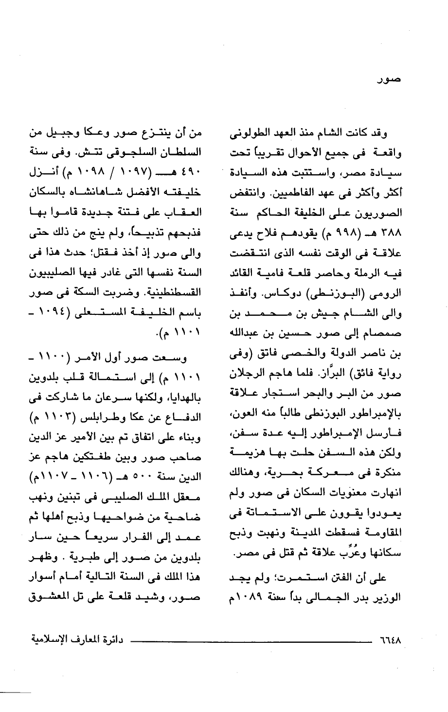 على أن الفتن استمرت؛ ولم يجد الوزير بدر الجمالى بدًا سنة 1089 م من أن ينتزع صور وعكا وجبيل من السلطان السلجوقى تتش. وفى سنة 490 هـ (1097/ 1098 م) أنزل خليفته الأفضل شاهانشاه بالسكان العقاب على فتنة جديدة قاموا بها فذبحهم تذبيحا, ولم ينج من ذلك حتى والى صور إذ أخذ فقتل؛ حدث هذا فى السنة نفسها التى غادر فيها الصليبيون القسطنطينية. وضربت السكة فى صور باسم الخليفة المستعلى (1094 - 1101 م).