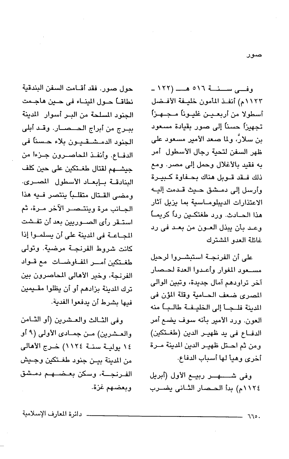 وفى الثالث والعشرين (أو الثامن والعشرين) من جمادى الأولى (9 أو 14 يولية سنة 1124) خرج الأهالى من المدينة بين جنود طغتكين وجيش الفرنجة، وسكن بعضهم دمشق وبعضهم غزة.