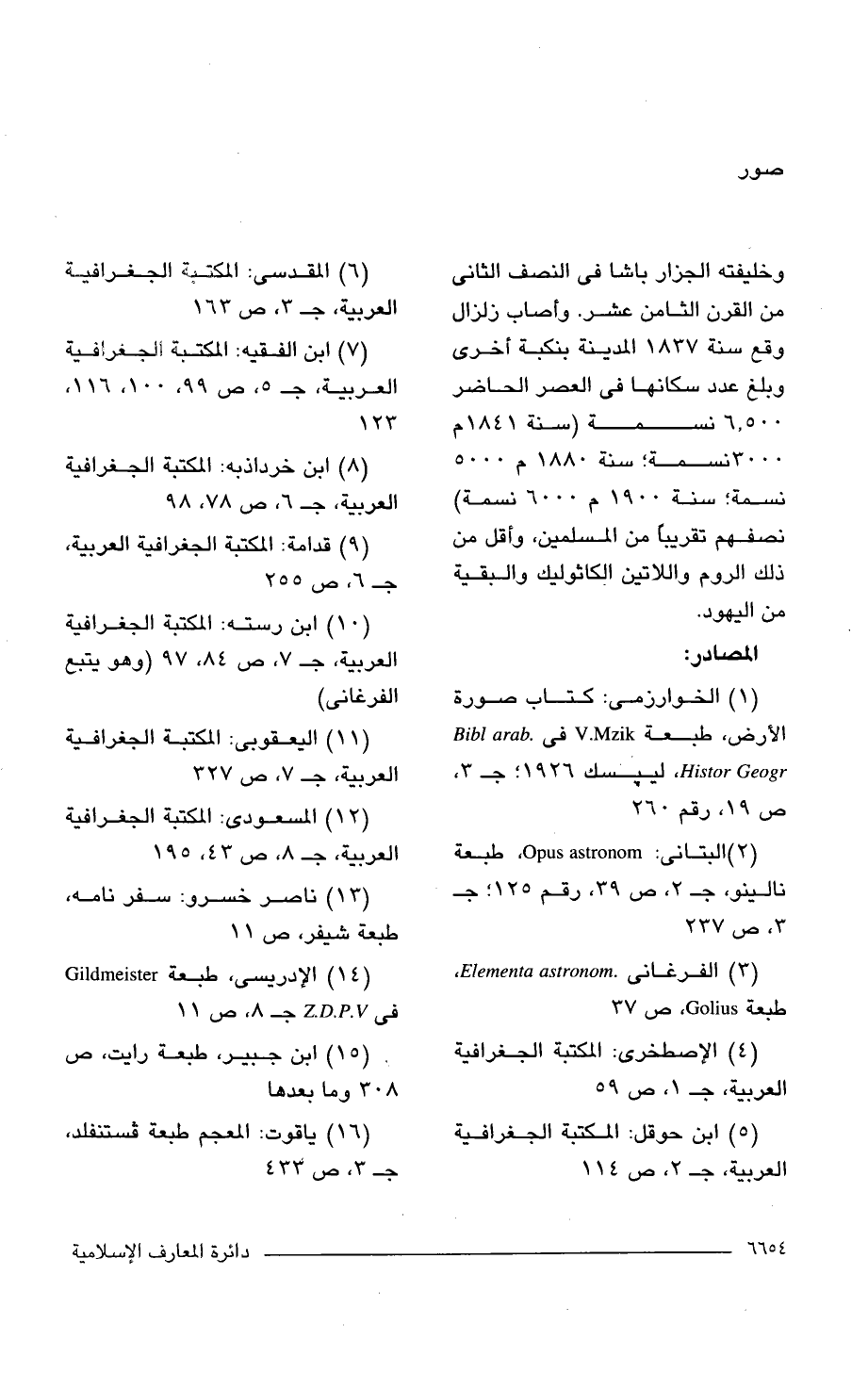 (1) الخوارزمى: كتاب صورة الأرض، طبعة V.Mzik فى Bibl arab Histor Geogr، ليبسك 1926؛ جـ 3، ص 19, رقم 260