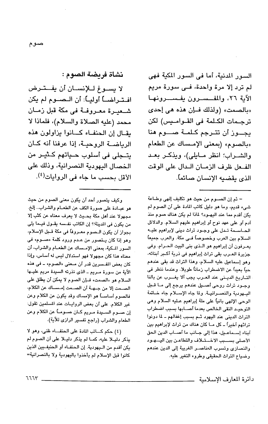 = ثم إن الصوم من حيث هو تكليف إلهى وطاعة شئ قديم، وما هو دليل كاتب المادة على أن الصوم لم يكن أقدم مما عند اليهود؟ لماذا لم يكن هناك صوم منذ آدم أو على عهد نوح أو إبراهيم عليهم السلام. والدلائل الحاسمة تدل على وجود تراث دينى لإبراهيم عليه السلام بين العرب وخصوصًا فى مكة. والعرب جميعًا يعرفون أن إبراهيم هو الذى بنى البيت الحرام. وفى جزيرة العرب بقى تراث إبراهيم فى ذرية أكبر أبنائه، وهو إسماعيل عليه السلام، وهذا التراث قد بقى عندهم حيًا بعيدًا عن الاضطراب زمانا طويلا. وعندما ننظر فى التاريخ الدينى عند العرب يجب ألا يغرب عن بالنا وجود تراث روحى أصيل عندهم يرجع إلى ما قبل اليهودية والنصرانية. ولما جاء الإسلام جاء خاتمة الوحى الالهى بانيًا على ملة إبراهيم عليه السلام وهى التوحيد النقى الخالص بعد ما أصابها بسبب اضطراب التراث الدينى عند اليهود ثم بسبب إغفالهم -لما دونوا تراثهم أخيرًا- كل ما كان هناك من تراث وإبراهيم بين أبناء إسماعيل، هذا إلى جانب ما أصاب الدين الحق الأصلى بسبب الاختلاف والتطاعن بين اليهود والنصارى وتسرب العناصر الغريبة إلى الدين عندهم وضياع التراث الحقيقى وطروء التغير عليه.