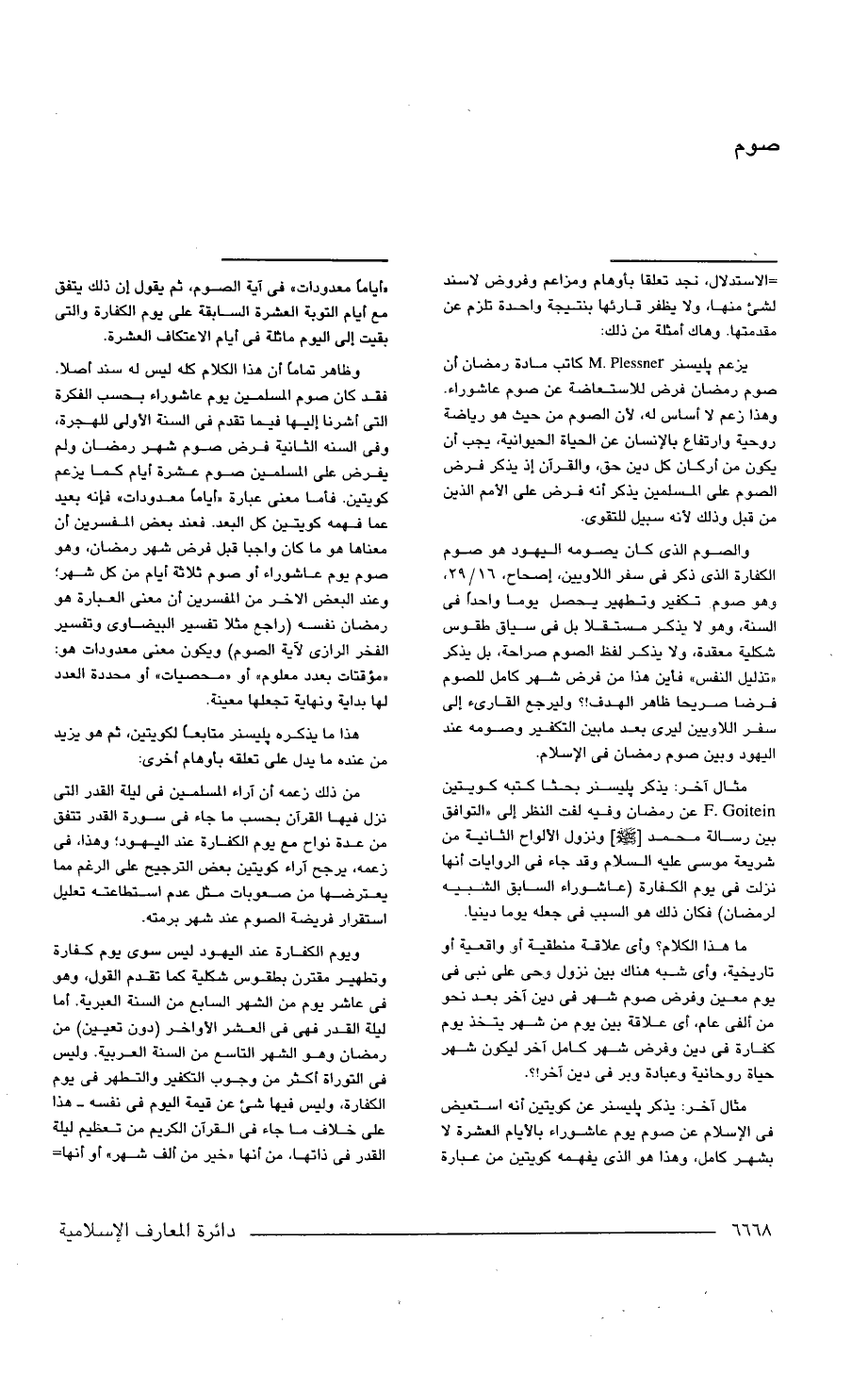 يزعم بليسنر M.Plessner كاتب مادة رمضان ان صوم رمضان فرض للاستعاضة عن صوم عاشوراء. وهذا زعم لا أساس له، لأن الصوم من حيث هو رياضة روحية وارتفاع بالإنسان عن الحياة الحيوانية، يجب أن يكون من أركان كل دين حق، والقرآن إذ يذكر فرض الصوم على المسلمين يذكر أنه فرض على الأمم الذين من قبل وذلك لأنه سبيل للتقوى.