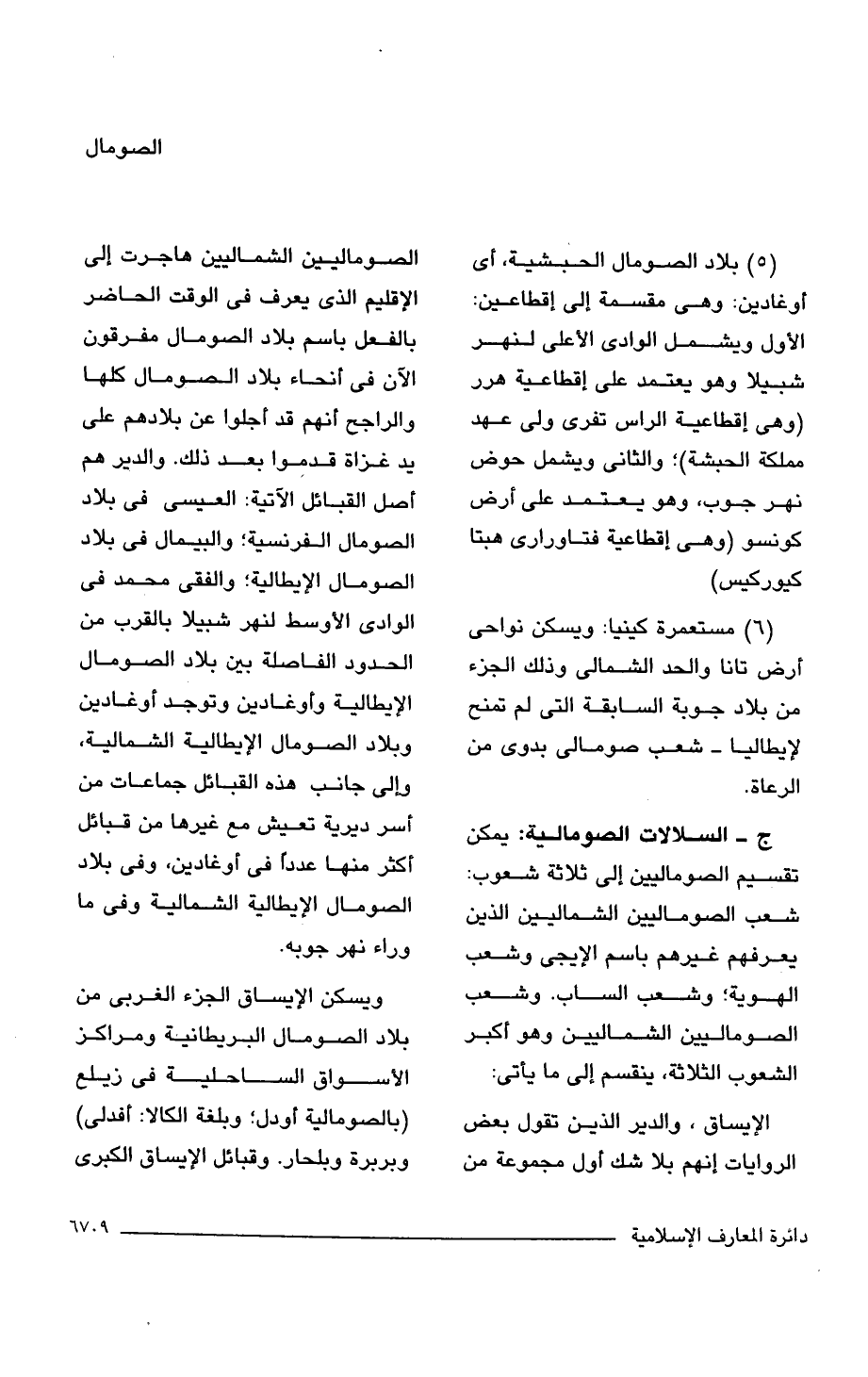 الإيساق، والدير الذين تقول بعض الروايات إنهم بلا شك أول مجموعة من الصوماليين الشماليين هاجرت إلى الإقليم الذى يعرف فى الوقت الحاضر بالفعل باسم بلاد الصومال مفرقون الآن فى أنحاء بلاد الصومال كلها والراجح أنهم قد أجلوا عن بلادهم على يد غزاة قدموا بعد ذلك. والدير هم أصل القبائل الآتية: العيسى فى بلاد الصومال الفرنسية؛ والبيمال فى بلاد الصومال الإيطالية؛ والفقى محمد فى الوادى الأوسط لنهر شبيلا بالقرب من الحدود الفاصلة بين بلاد الصومال الإيطالية وأوغادين وتوجد أوغادين وبلاد الصومال الإيطالية الشمالية، وإلى جانب هذه القبائل جماعات من أسر ديرية تعيش مع غيرها من قبائل أكثر منها عددًا فى أوغادين، وفى بلاد الصومال الإيطالية الشمالية وفى ما وراء نهر جوبه.